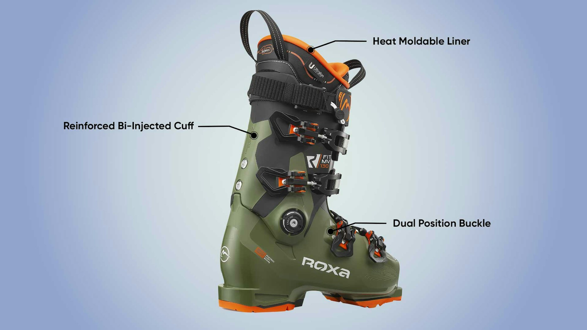 The R/Fit MV 130 is a traditional 4-buckle boot that features a dual-injected reinforced cuff, keeping the boot’s overall weight on the lighter side, while providing extra material in key places to keep the boot feeling powerful and snappy. The liner of this boot is fully heat-moldable for improved fit and features high-quality insulation to keep your foot warm.