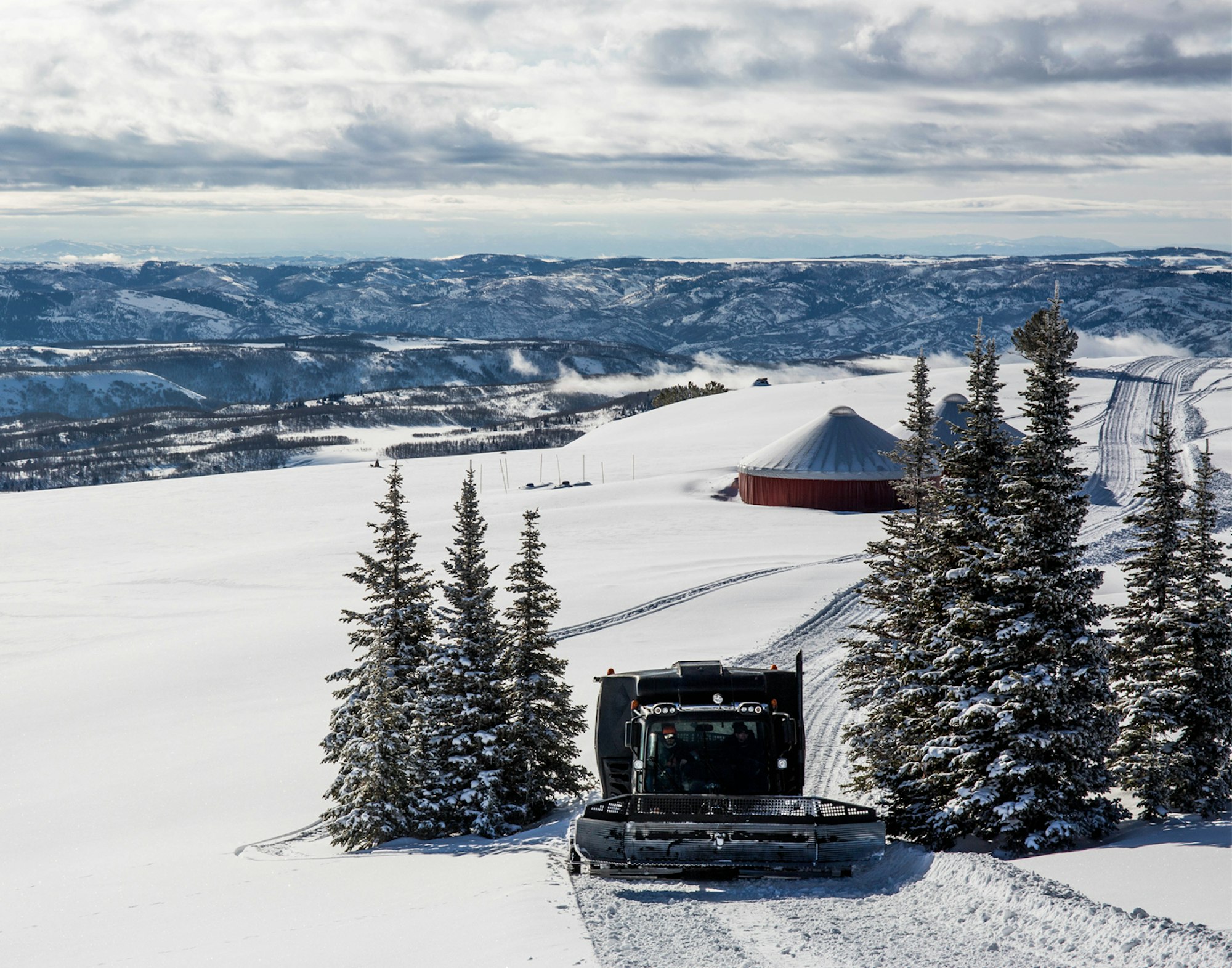 We arrived in the yurt village on Monday evening via two Pisten Bully snowcats, badass machines that are as nimble as they are powerful, enjoyed the sunset with a beer in-hand before sitting down inside the main yurt for a conversation mediated by Travis Tomczak, Giro’s Brand Manager. This was our chance to get the scoop on the all-new Grid helmet—for ladies, the Envi—and Contour goggle.