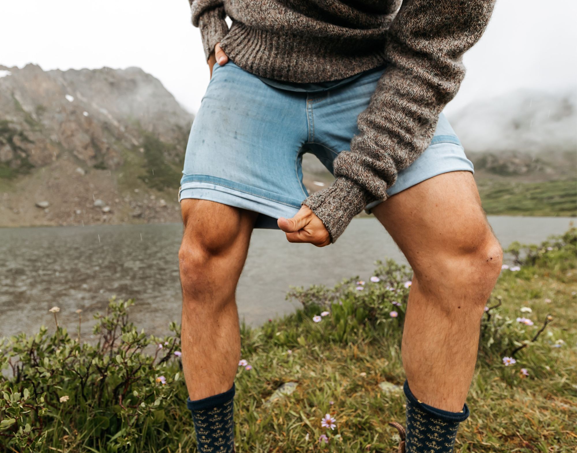 A short thatâs really thin, really stretchy, and holds up over time. We wanted to make something new, so we aimed far away from your favorite cut off Leviâs, which are 10 to 12-ounce denim. We started with an 8-ounce denim thatâs incredibly thin and stretchy. The most common feedback we get from people is that they get lots of compliments on the trail for their spunky style but also that they just never take them off.