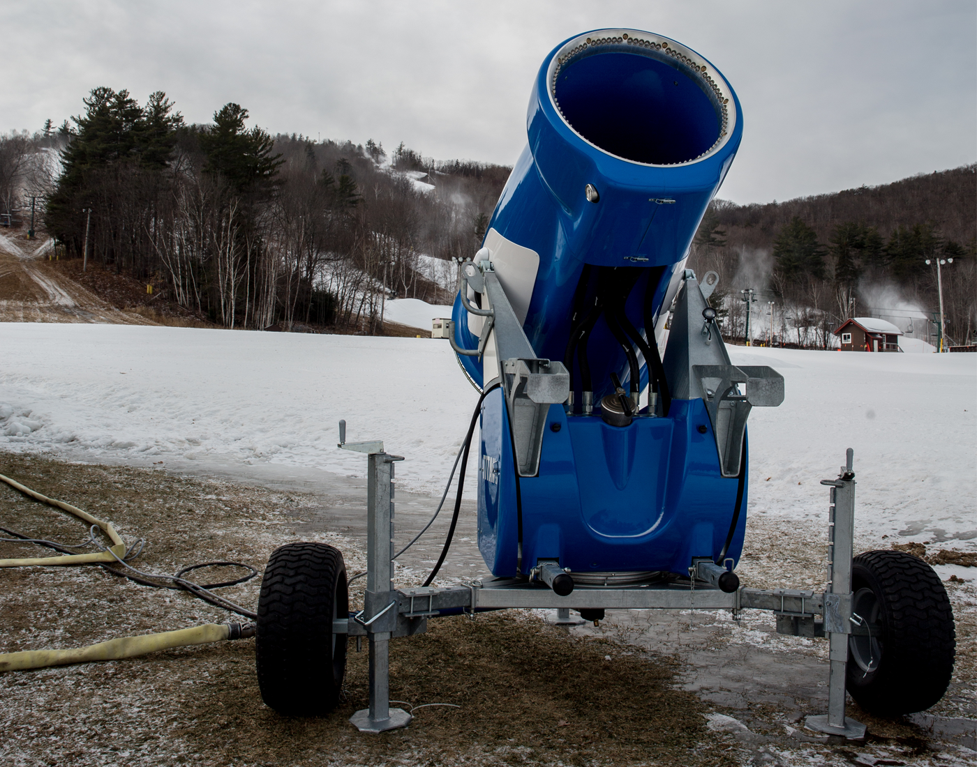 Up close with a snowgun at Gunstock Mountain, New Hampshire.
