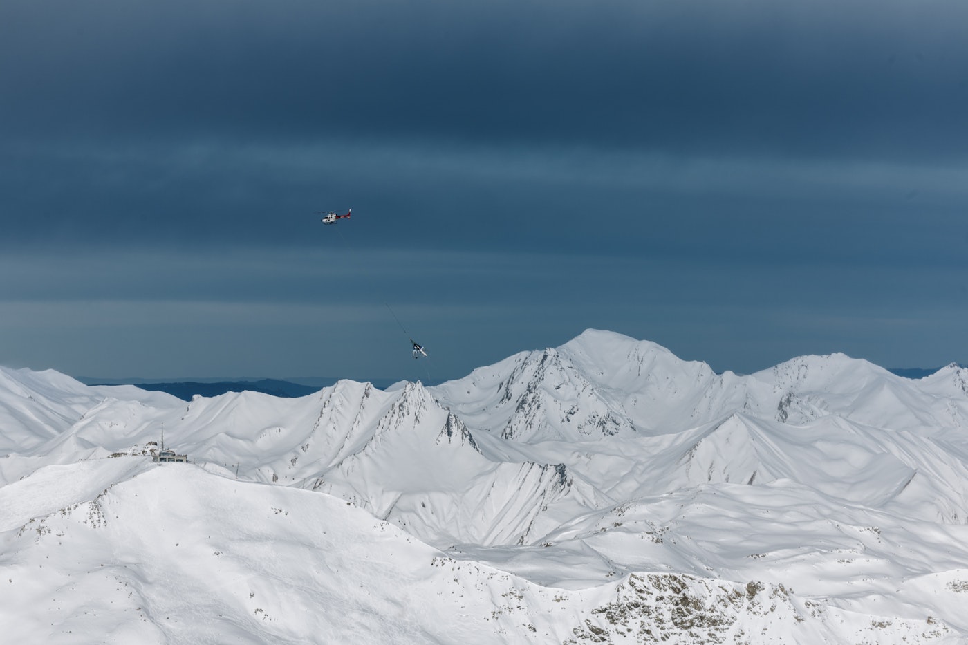 Flying the FWT Stop Two start gate into the peaks of Val Thorens, France