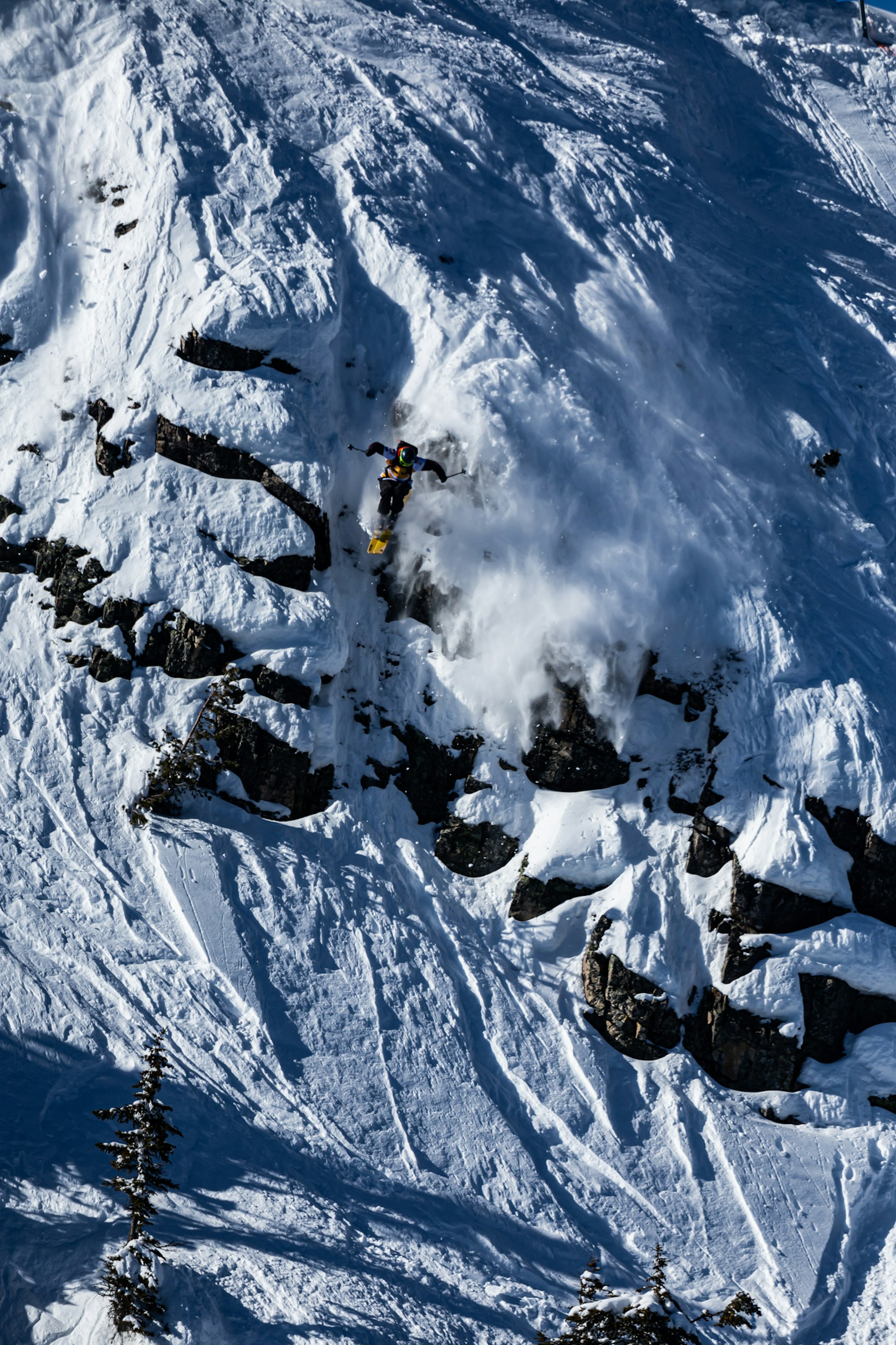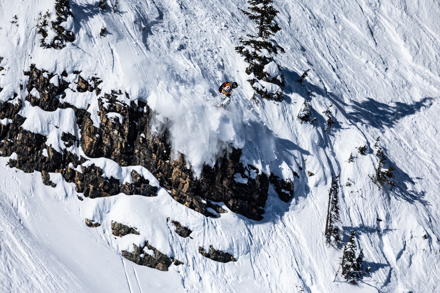 The usual competition face at Kicking Horse, the Ozone Venue, was out of commission today. The official description of the Ozone sounded less than optimal, as the press release regarding the venue read, “The top section was fine, but the middle section had very poor snow conditions with inconsistent quality, ranging from a thick crust to decent, and then to sugary snow over 50 cm deep, directly on top of rocks. The bottom was littered with ice cookies the size of watermelons.” Yucko. FWT organizers made the call to move the scene to a zone known as T1 South, a beautiful section that, while littered with trees, has plenty of cliffs, gaps and straight lines. We were even treated to comments in the booth from FWT veteran and Canada’s own Tom Peiffer, making this stop a true must-watch. We saw backflips, tomahawks, huge drops, plenty of 3s to go around (shoutout to Marcus Goguen for racking ’em up) and a plethora of other action, so let’s dive in.