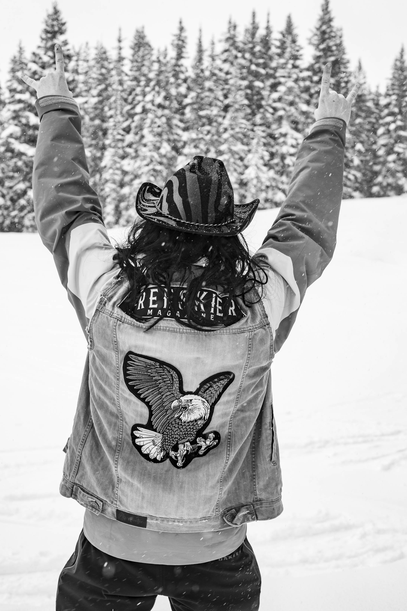 FREESKIER’s Damian Quigley reppin’ a custom denim vest.