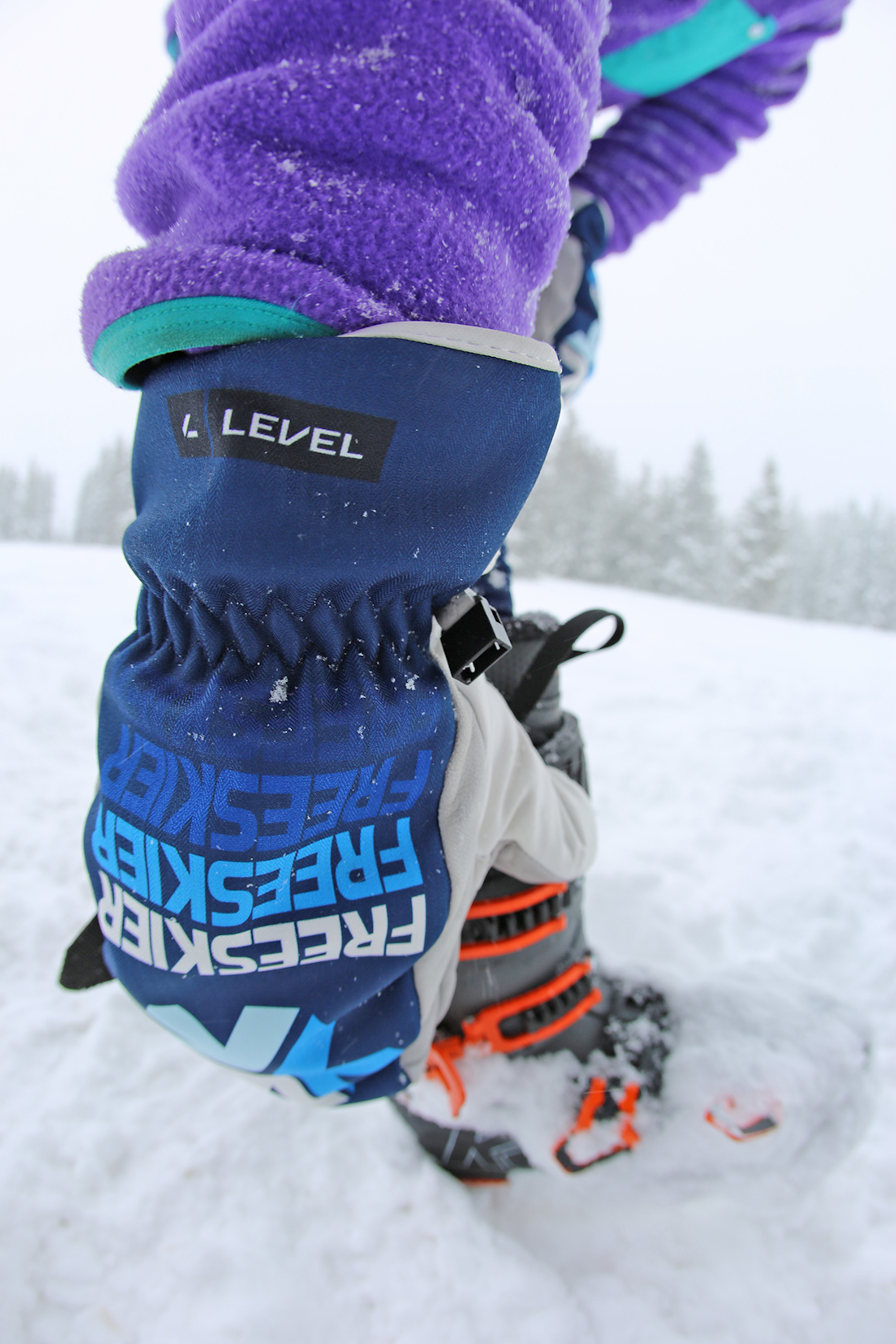 Level Gloves with the super fresh, custom FREESKIER mittens. PHOTO: Donny O’Neill