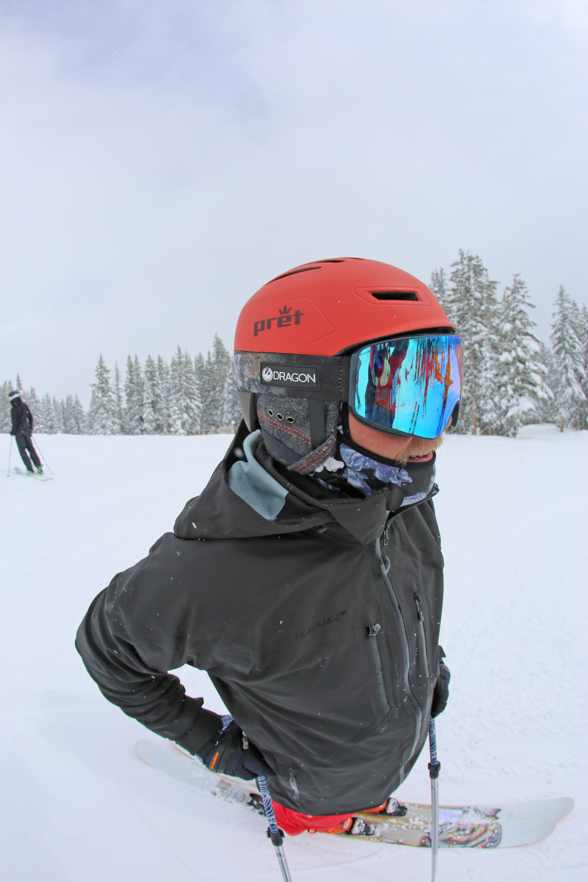 From the top down, Pret Helmet kept our testers’ safe from the inevitable fall; Dragon Alliance goggles had us seeing clearly in every weather condition; The Ski Monster’s balaclava helped us stay warm; and Outdoor Tech’s mobile charger gave our testers enough juice to review skis from first to last chair. PHOTO: Donny O’Neill
