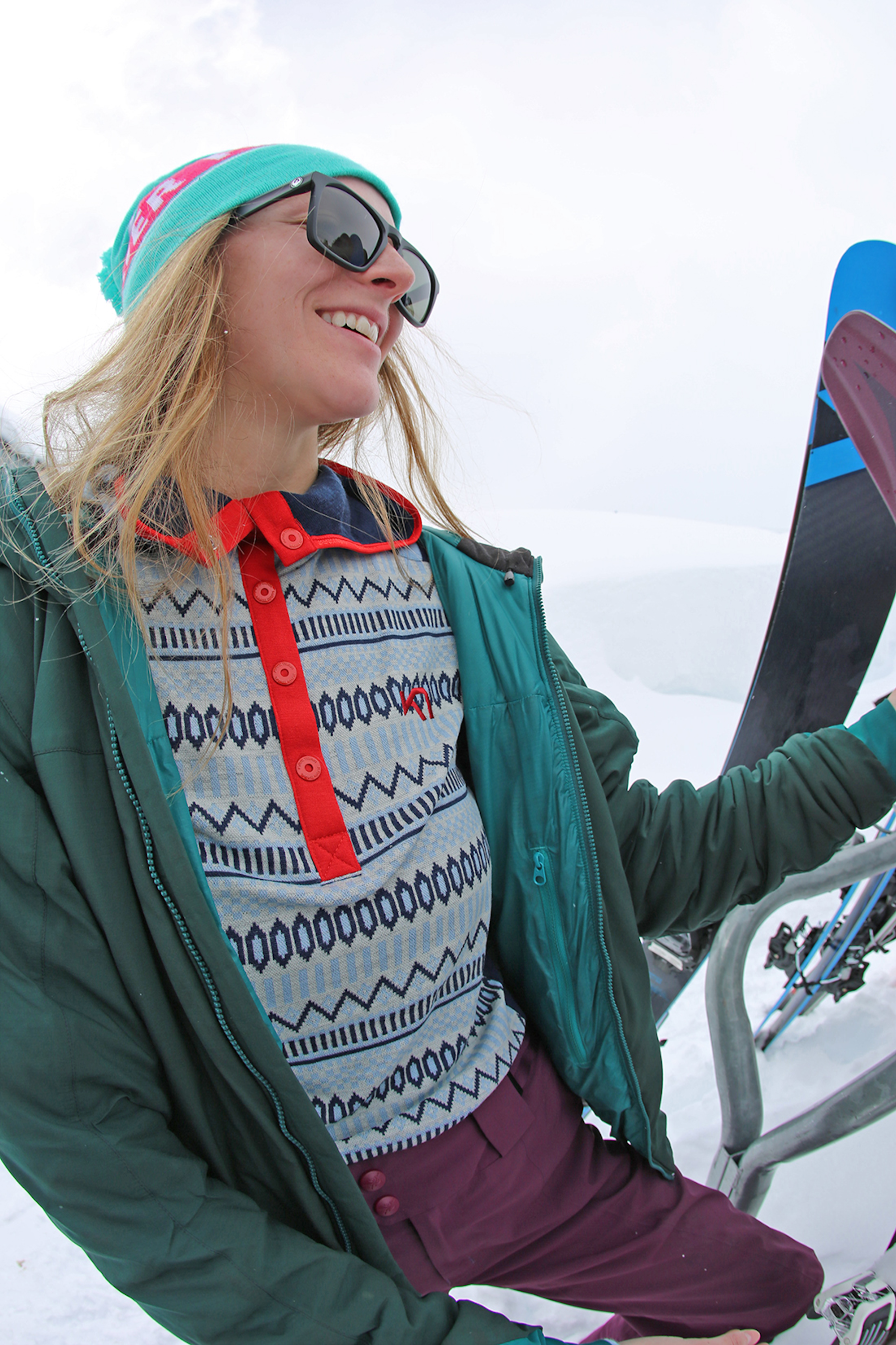 Kari Traa with the most stylish baselayers in the game right now. PHOTO: Donny O’Neill