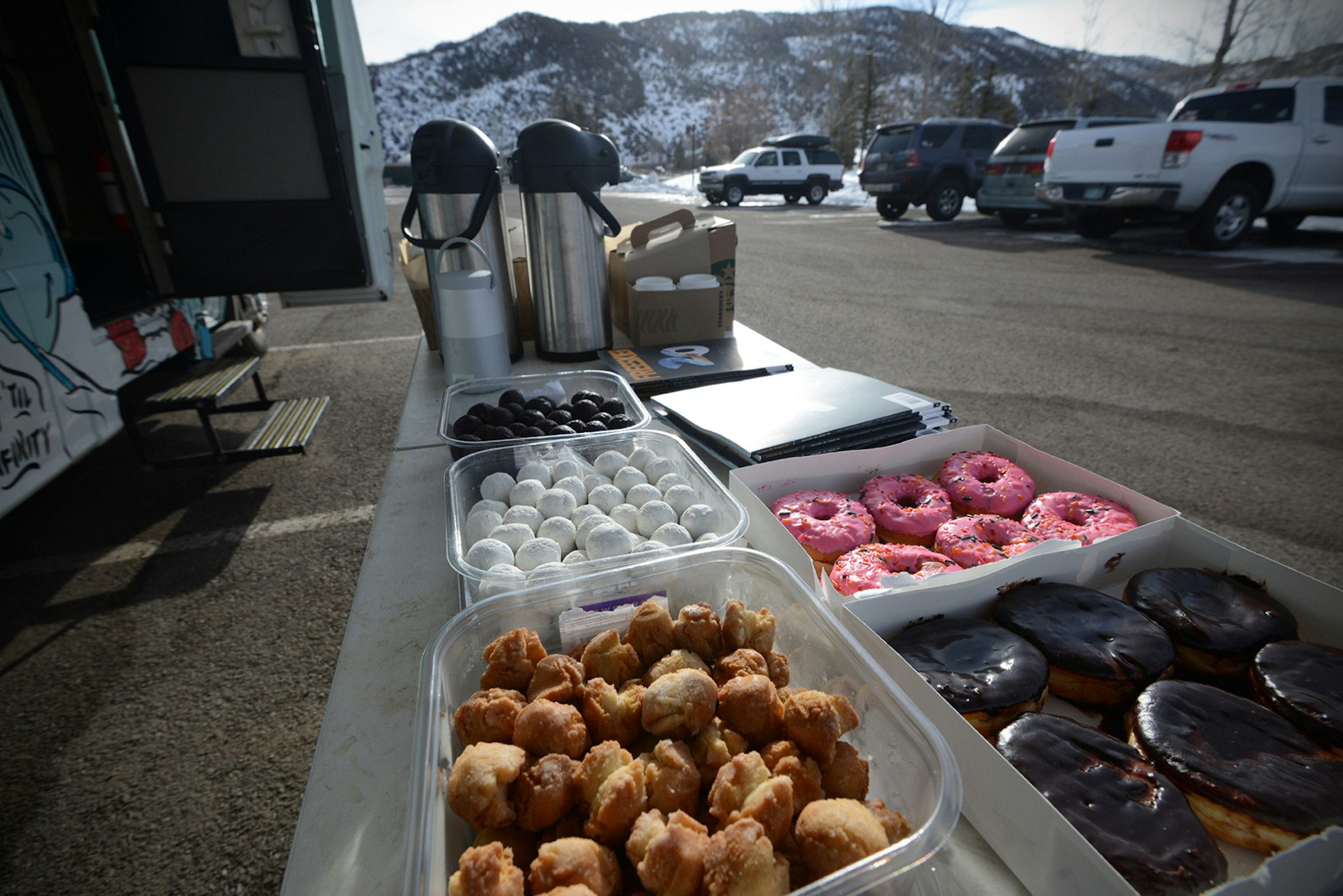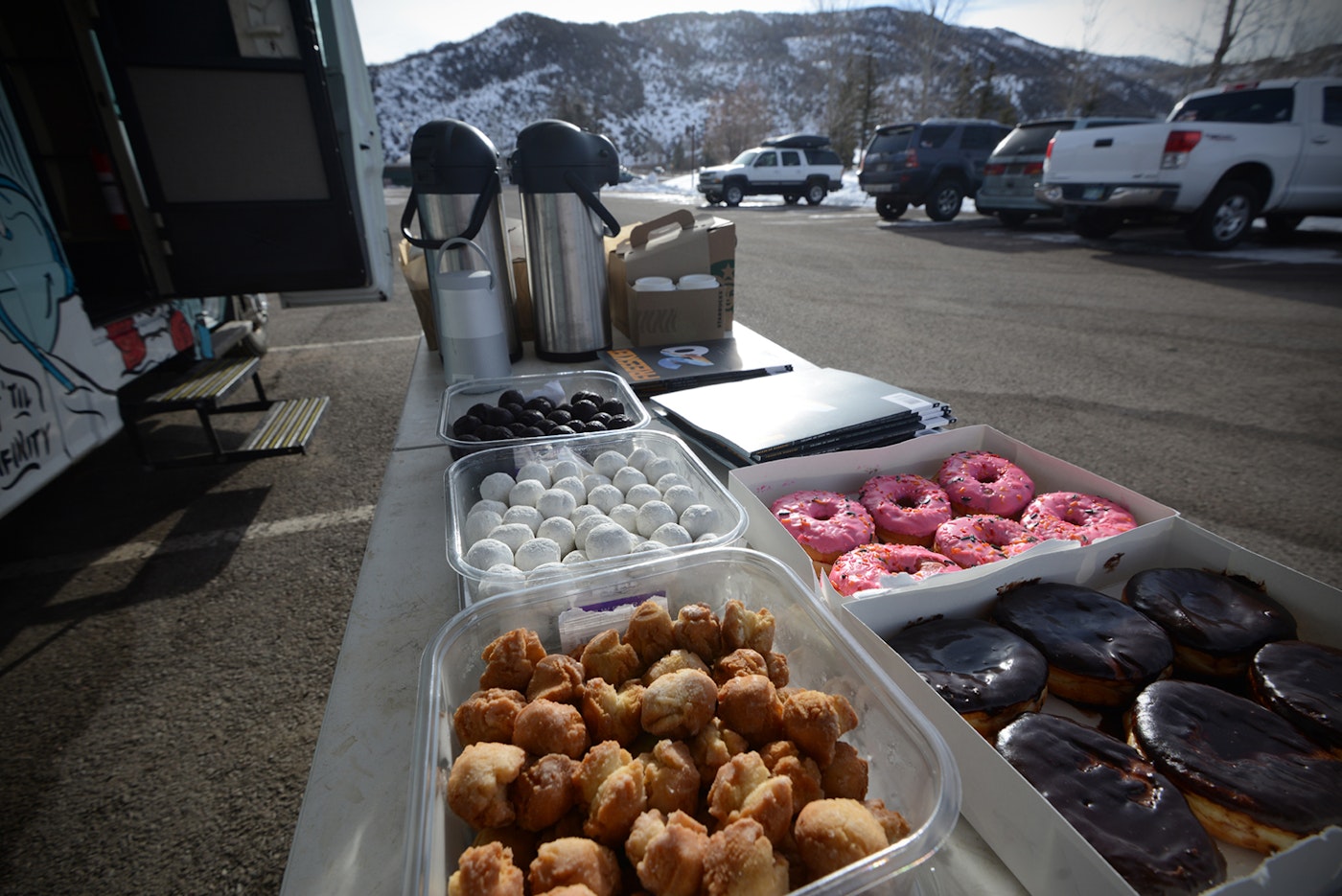 Coffee and donuts with team FREESKIER