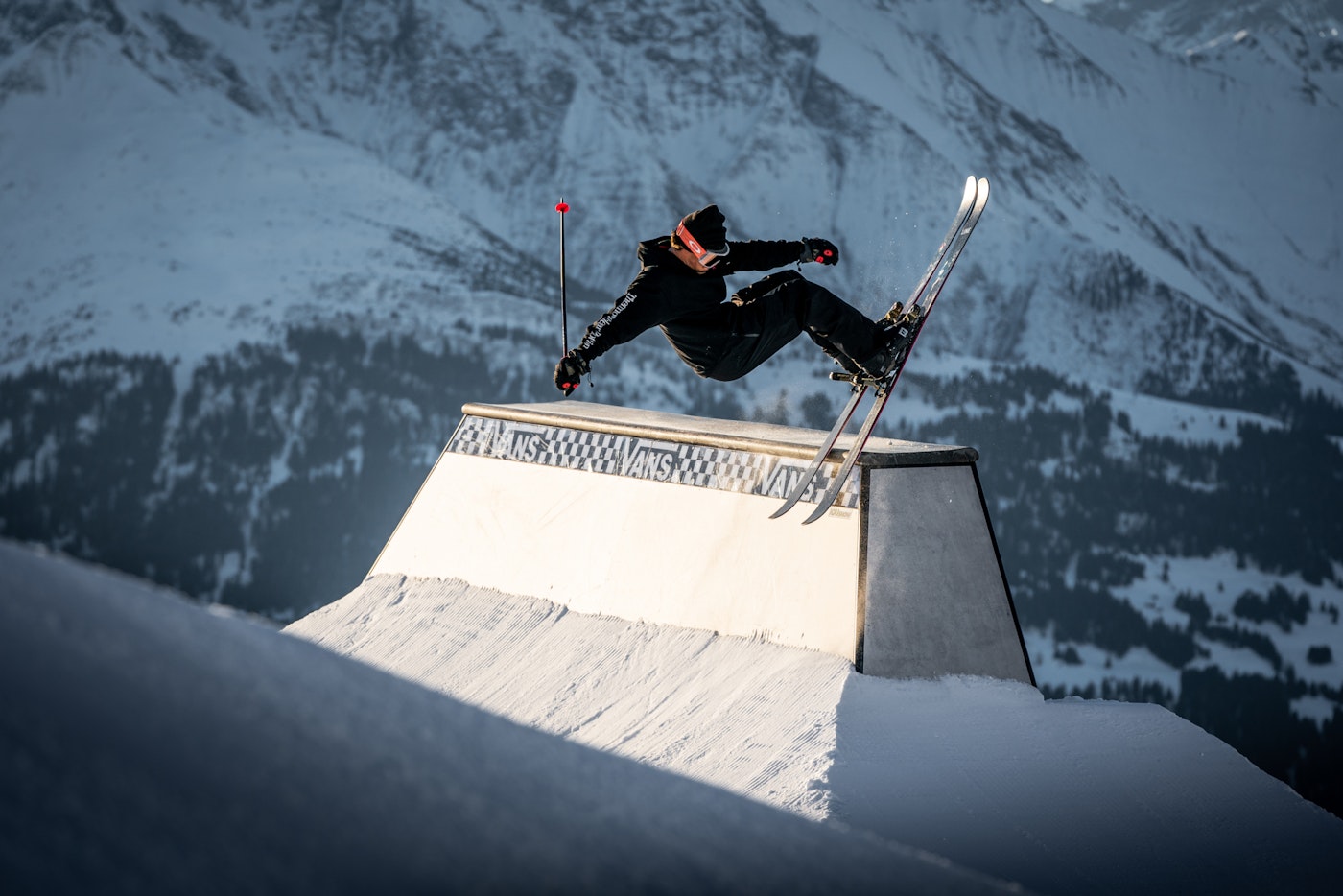 It should be no surprise, Swiss freeski freak Andri Ragettli, who grew up in the hamlet next door to LAAX, nabbed first place. Ragettli mastered his first 360 and backflip on these slopes and he took home a win with a top-to-bottom run that led off with a transfer front swap continuing 270 out, to left 270 on continuing 450 off, then through the jumps going right double cork 1260 mute, switch left double bio 1260 double mute, left double cork 1620 tail grab, and finishing with a switch on to frontside 270 off on the up rail to switch right corked 720 Japan off the step down of the final feature. If you’re dizzy just from reading the deets of his performance, imagine watching it live from the seats at the resort’s prime viewing spot, Caffè NoName.
