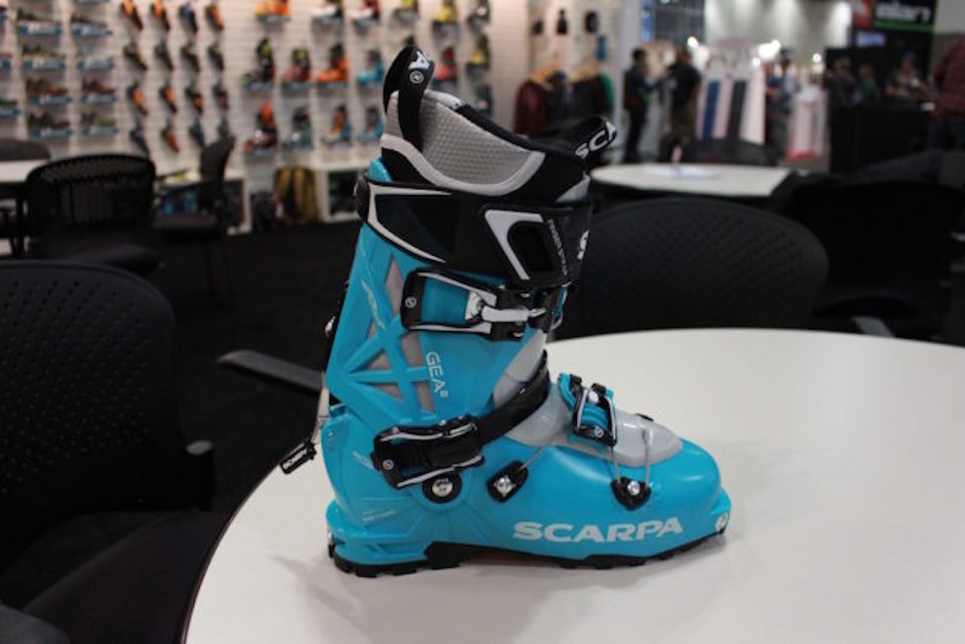 The redesigned Gea will have backcountry skiers drooling this fall. The Grilamid construction maintains a light weight but ensures ample stiffness (100 flex) for descents. Scarpa’s Axial Alpine Evo tongue construction combines ease of entry with an overlap build that keeps power transmission at a premium. The patent pending Wave Closure System utilizes a cable that links to a single buckle for fit adjustment; this feature also lightens the load considerably. For the cherry on top, the Gea’s frictionless hike mode offers a 60-degree range-of-motion.