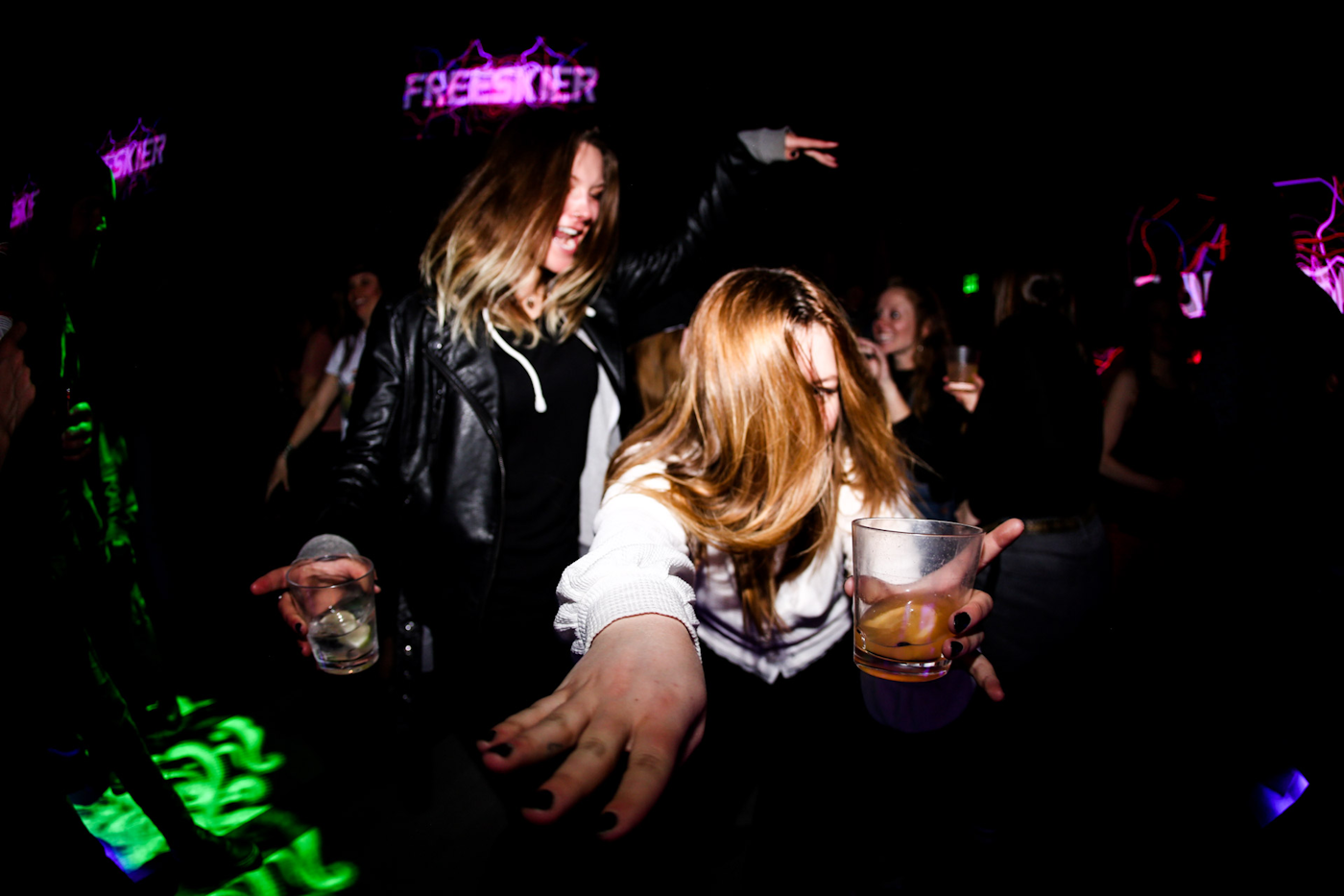 The stoke was at an all-time high for the fourth day of the annual FREESKIER Ski Test due in large part to the 13-plus inches of beautiful, fluffy fresh waiting for us at the top of Aspen Mountain. After a full day of plundering pow on next year’s skis, the hype continued late into the evening at one of Aspen’s most notorious nightclubs, Bootsy Bellows.