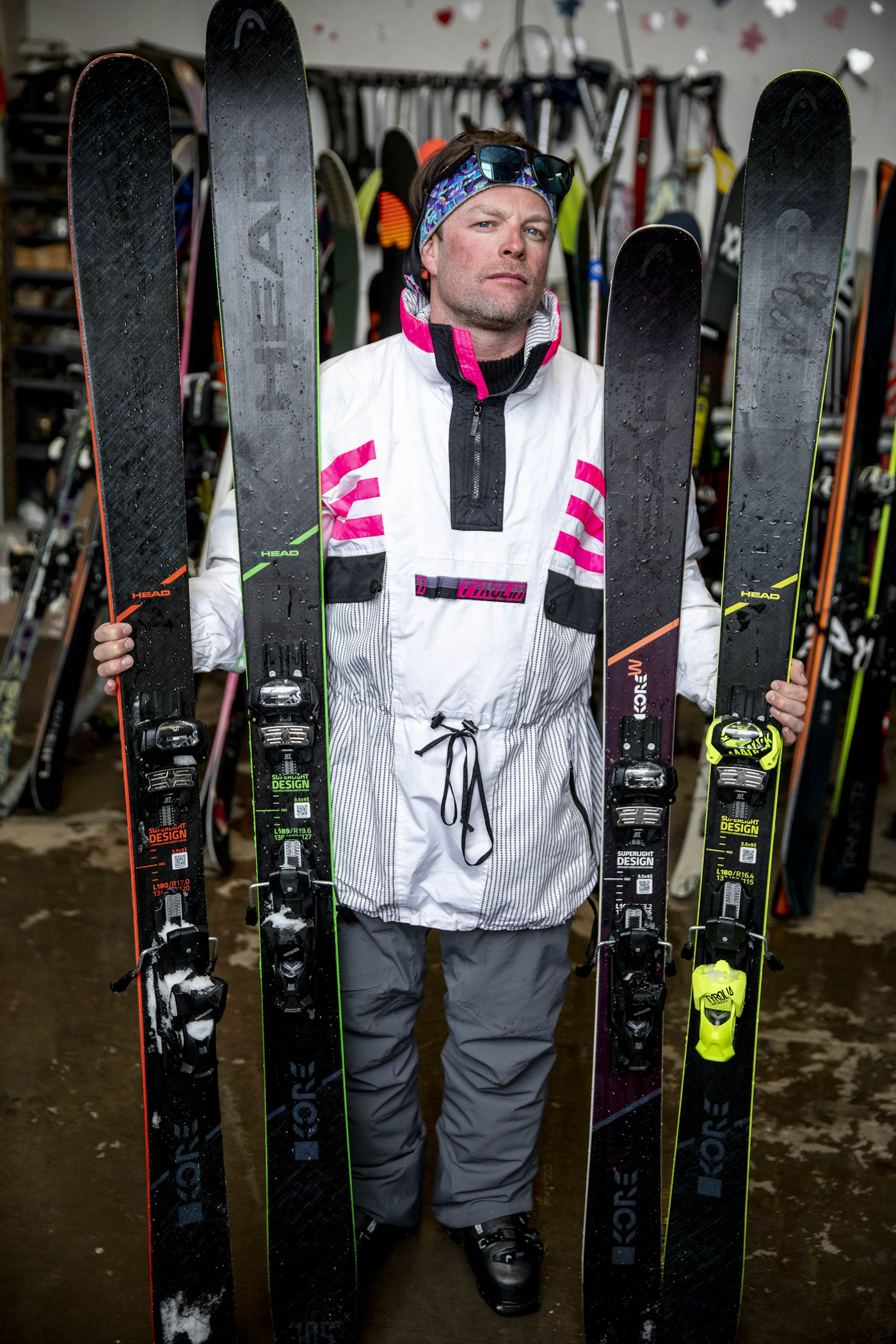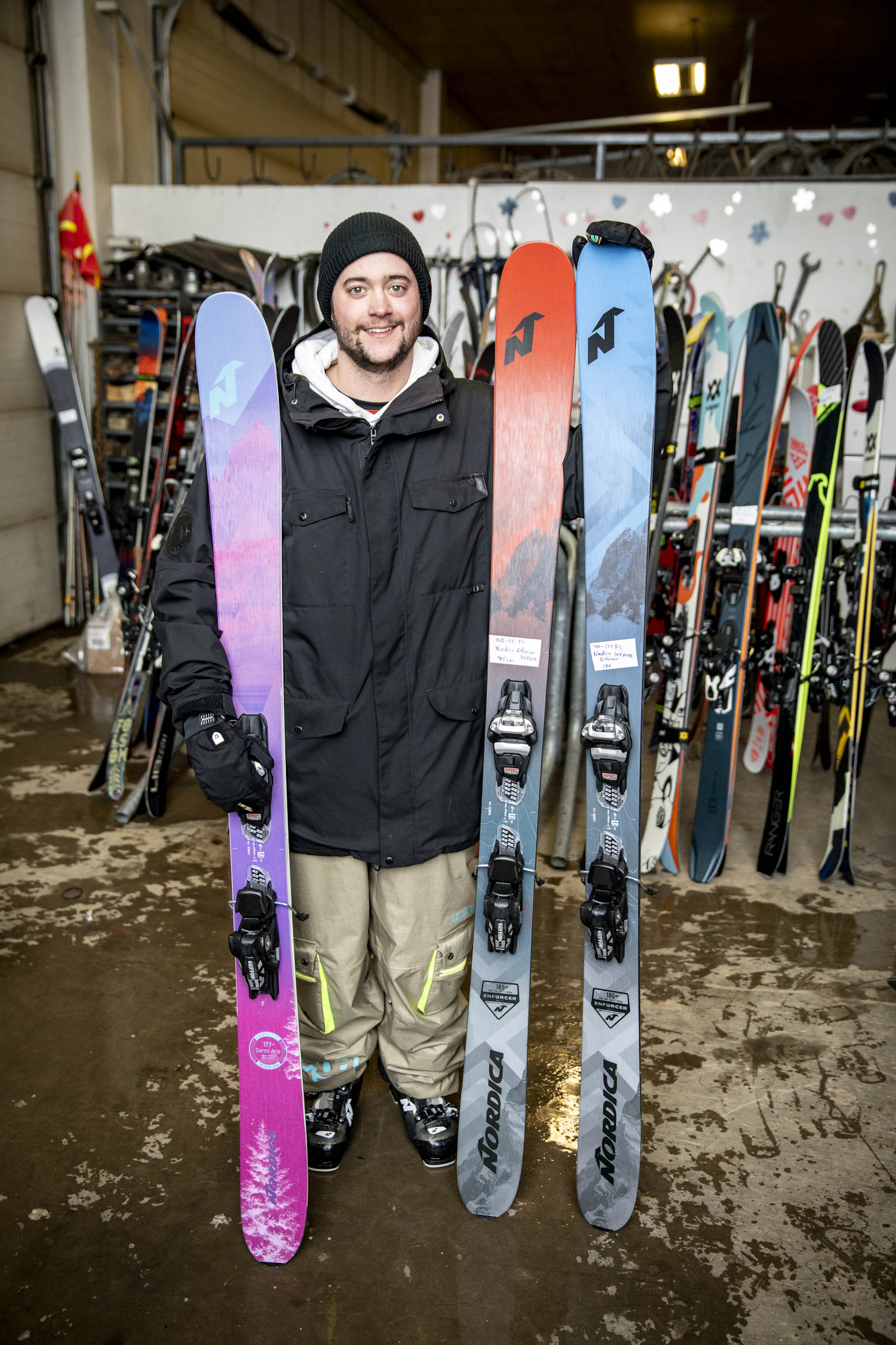 Head’s Sam Blethen with the tester-favorite KORE series skis.
