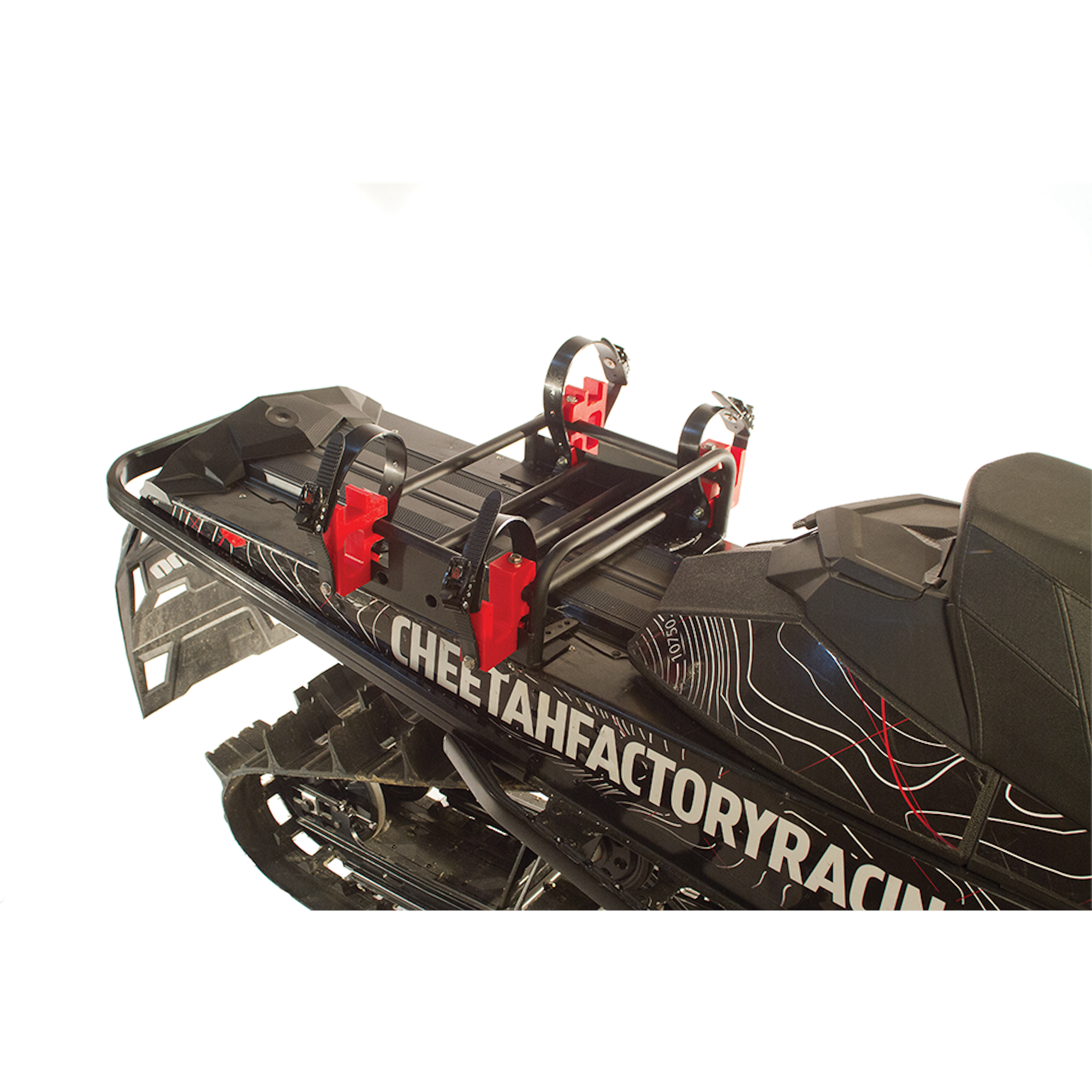 Keeping your skis and poles out of the way while “brapping” to your favorite zone is imperative. Relied upon by Dan Treadway and other pro skiers, the kit will deliver your sticks to your destination safely and soundly. Factory Racing’s Dual Ski Bracket system utilizes resin-infused nylon parts as well as injection molded straps that can handle negative-100-degree (Celsius) temperatures for worry-free travel through the dead-of-winter cold. This handy attachment is proudly made in the sled-ski capital of the world, Canada.