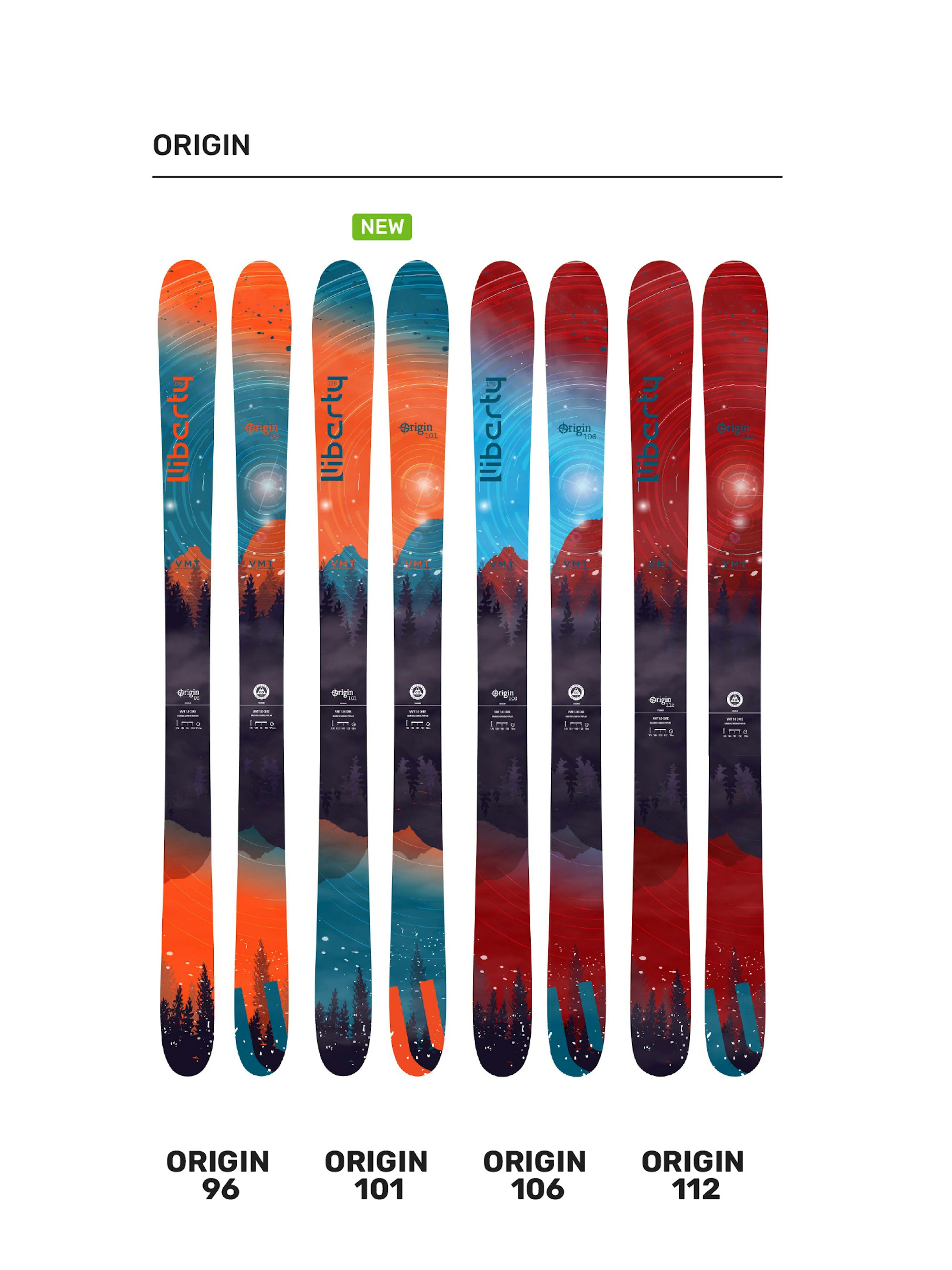 The Origin series is back and much improved. Every ski in the Origin series now comes with a huge upgrade in the core, Liberty’s VMT 1.0 construction. Liberty has also added a new, colored polyurethane sidewall that gives the Origins increased durability and a smoother ride in its classic freeride shape. New for next year, Liberty is excited to announce the addition of a much-demanded 101-millimeter version.