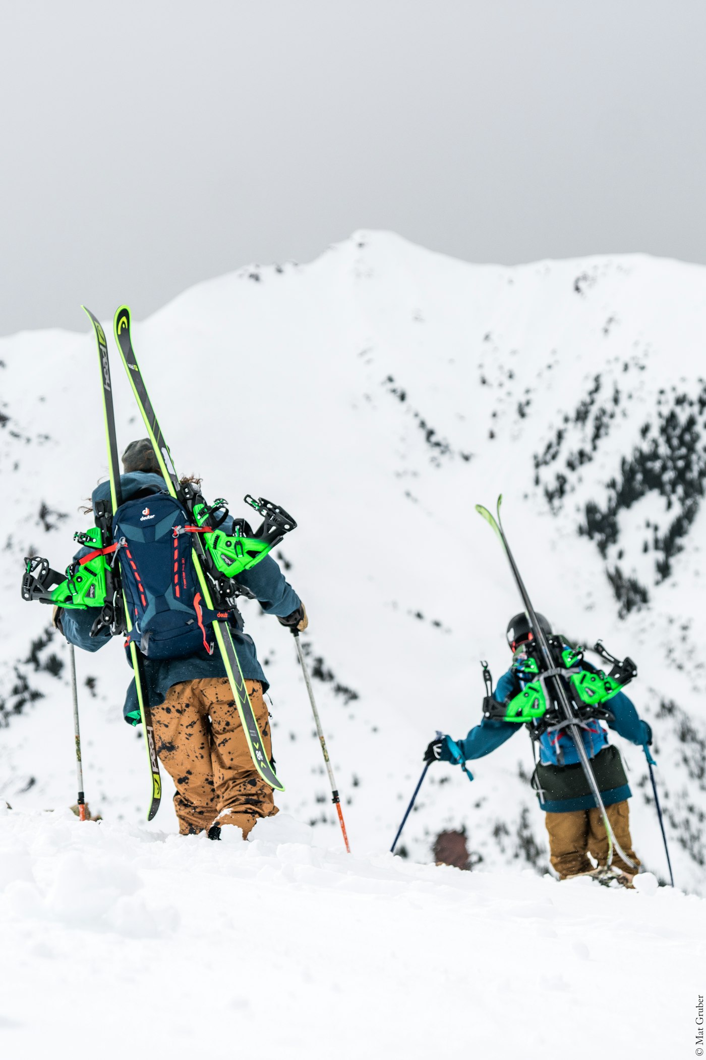 Dozens of prototypes developed into a plush, sneaker-esque walking boot with grippy Vibram soles. That boot integrates with a carbon fiber-reinforced nylon framework complete with three buckles to provide solid unification between the boot and chassis. Furthermore, a BOA closure system on the boot allows for incredible fine-tuning of fit. The result is a warm, comfortable boot that doesnât skimp on performanceâa boot that can be relied upon for high-speed downhill skiing and also endeavors off your skis, whether walking to the car in that faraway parking lot, visiting the après bar or bootpacking up a ridge. And the walking boots themselves actually double as snowboard boots.