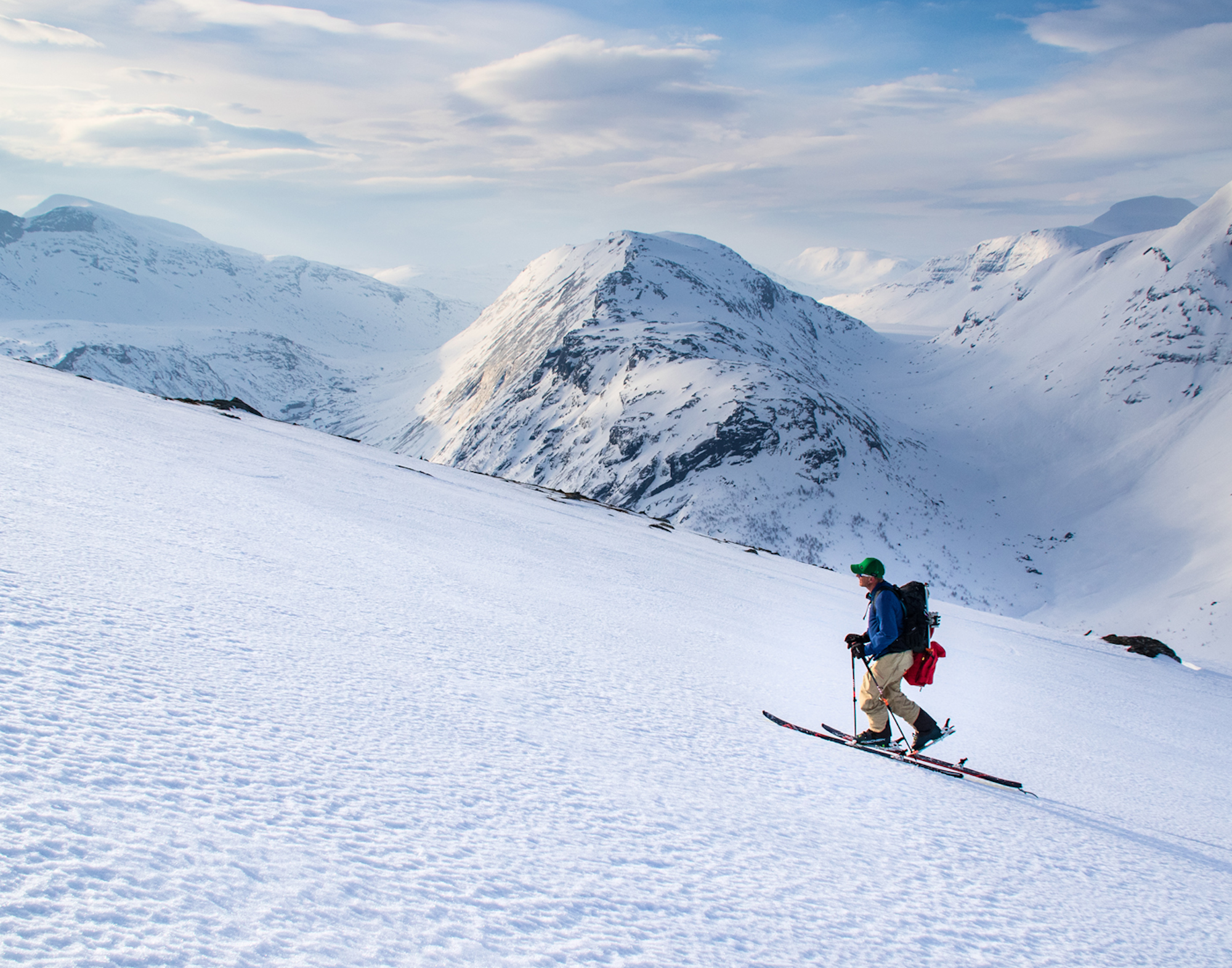 Sven enjoying a mellow skin track in the glacial carved mountains of the arctic circle.