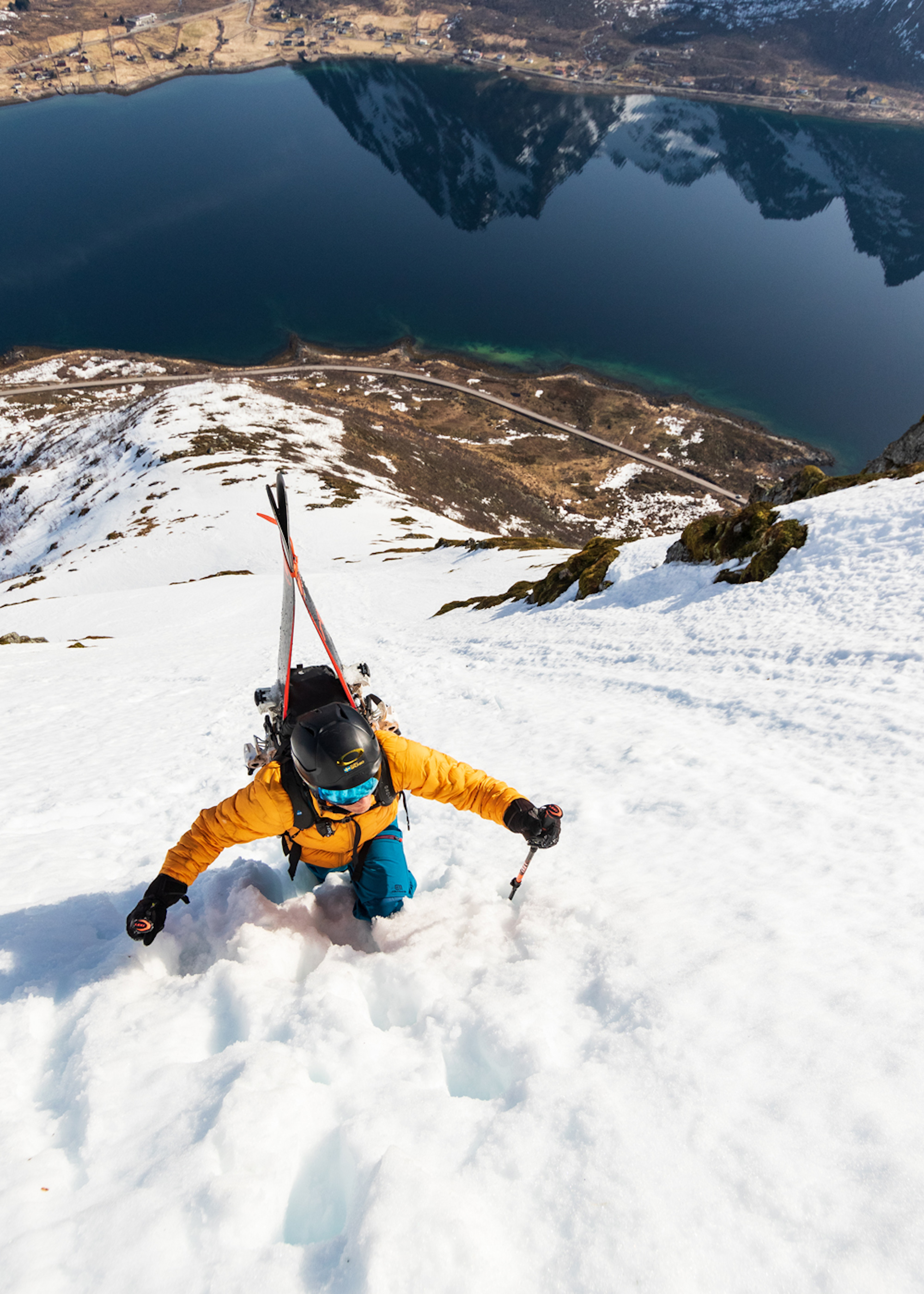 A group of tourers in the Lofoten backcountry. With Norway’s “right to roam” you can access the mountain form pretty much anywhere you see fit.