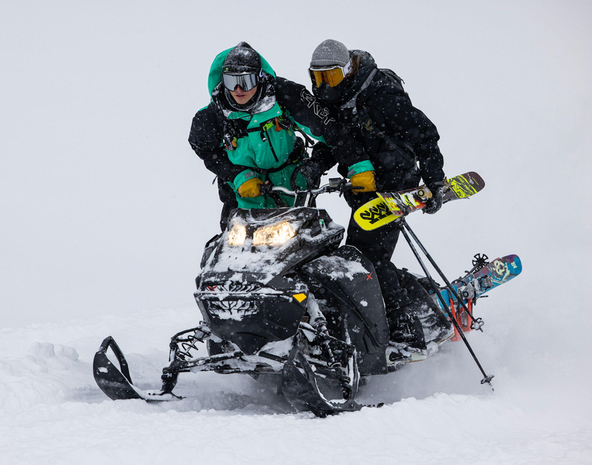 What happens when you get three of skiing’s rowdiest skiers together in one place with an arsenal of Ski-Doo’s newest snowmobiles? Magic, that’s what happens. In February, FREESKIER met up with professional skiers (and experienced slednecks) Karl Fostvedt, Colby Stevenson and Torin Yater-Wallce in the Jackson Hole backcountry to sled, film and give you a behind-the-scenes glimpse at what it takes to make a ski edit come to life. Powered by Ski-Doo’s Summit X 850 Turbo sleds, our crew explored the vast backcountry around Jackson with style and ease, and photographer Eric Parker was on-site to capture the action. Keep scrolling to see a complete gallery showcasing our badass adventure in the Tetons.