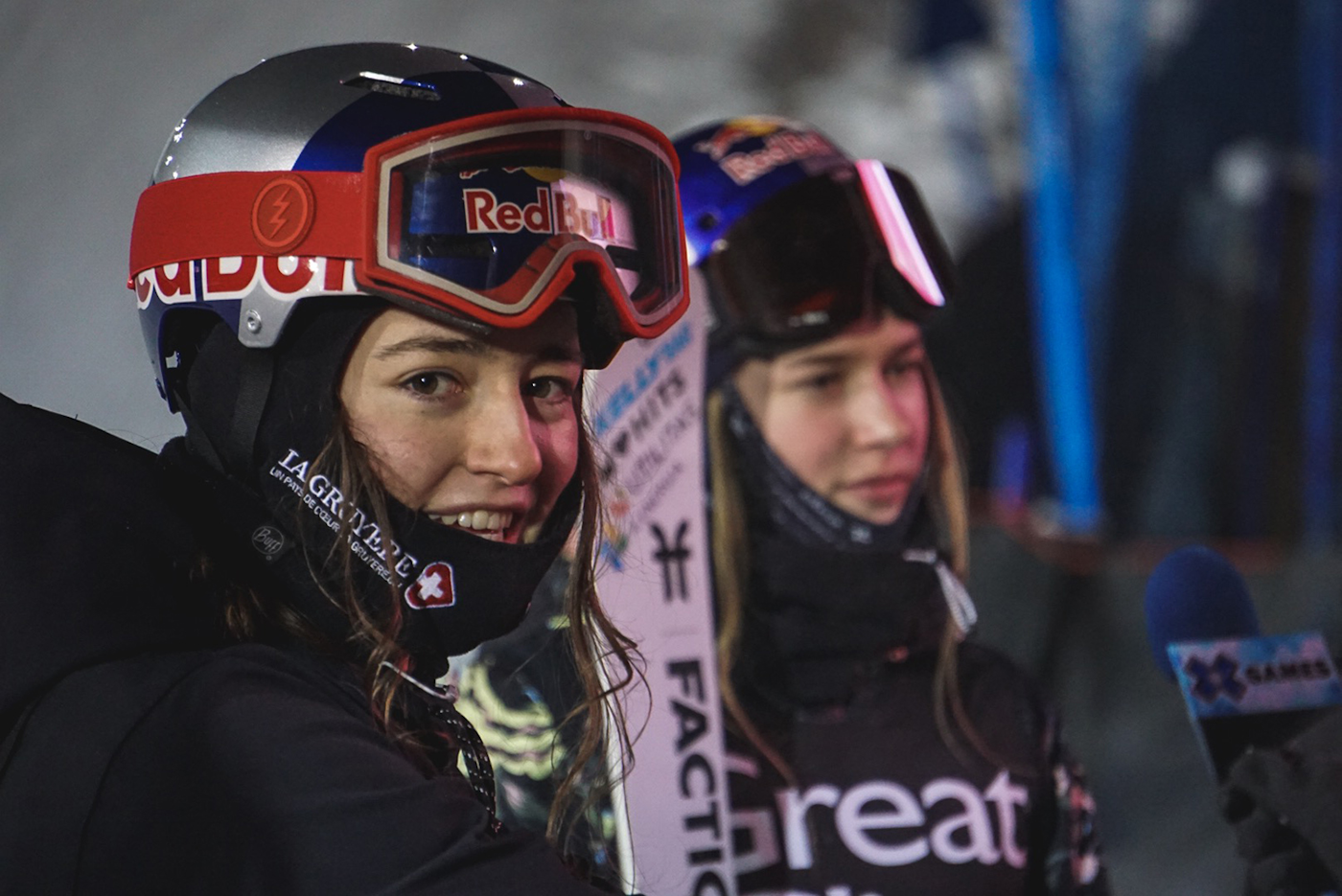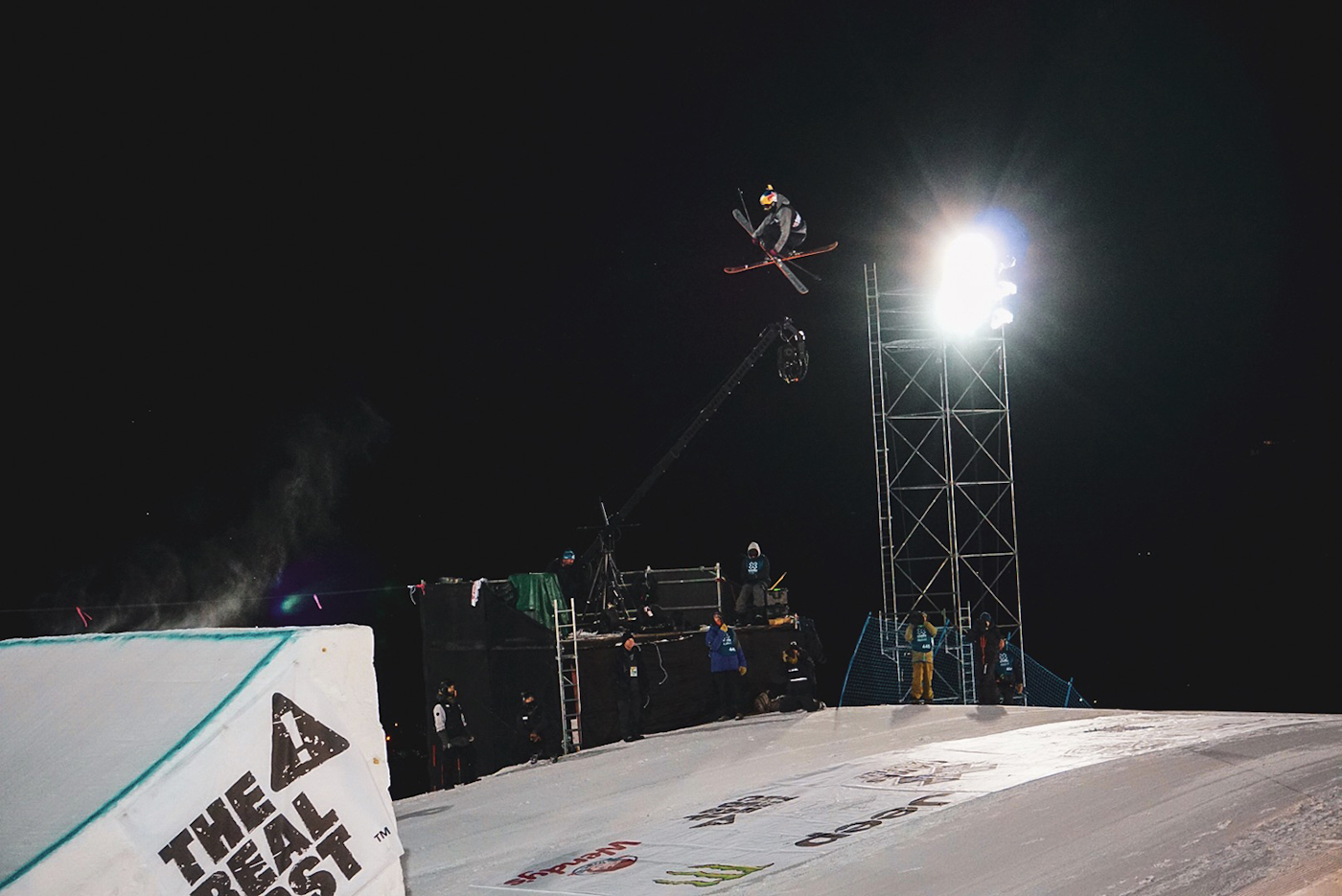 The sun dropped below the horizon and the brilliant white lights turned on to illuminate the big air jump as the ladies once again took to the skies. Mathilde Gremaud earned gold with a switch double 1080 safety and a right bio/rodeo 900.