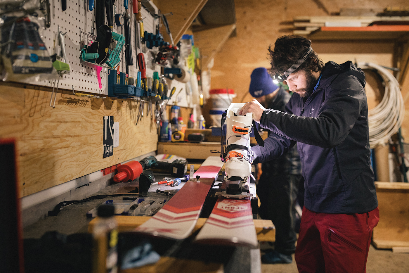 “He’ll go down into the gear room and start retrofitting people’s equipment overnight. That’s how he got the nickname Tinkerbell,” says Sterbenz. “He can be a total pain in the ass sometimes, but when shit hits the fan in the backcountry, and you get him on the radio, and he shows up with a bag of tools and his skills, he can fix any problem you may have and get everybody home at the end of the night. That’s what it’s all about.”