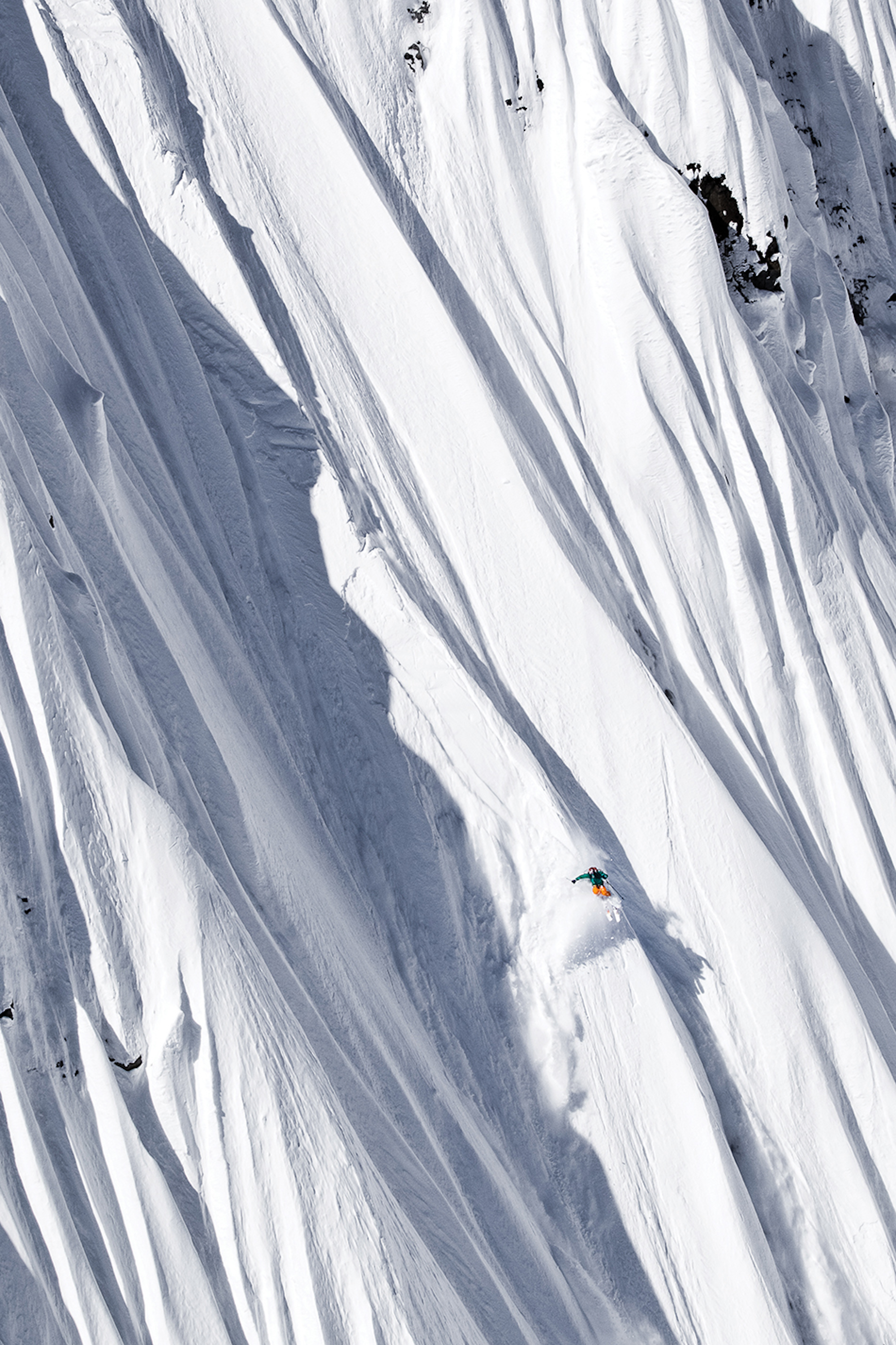 Fans and close friends also know that this level of perfectionism carries through to his line selection on the mountain. “He looks at something in a different way than anybody else,” says Henderson. “But he’s not a cowboy. The way he looks at terrain is the same way he looks at gear, that maybe it can be [skied] just a little bit better.”