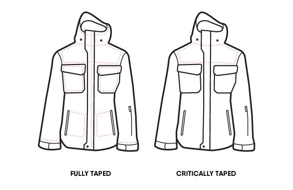 When outerwear is sewn together, needle holes are pierced through the membrane around the seams and zippers. The holes are to water as Bill Buckner is to baseballs—highly penetrable. Those holes are just what water needs to seep into your clothing and ruin your day. To solve this problem, seams are often taped over to cover up the holes. In the most premium outerwear, seams are eliminated completely through a welding process known as seam sealing. Sometimes, manufacturers seam seal only in the areas most prone to soaking, like the hood or shoulders, which is called “strategic” or “critical” sealing. Strategic sealing will hold up to mild weather, no problem. Fully sealed seams, though, are essential for those who regularly ski in wet climates and harsh environments.