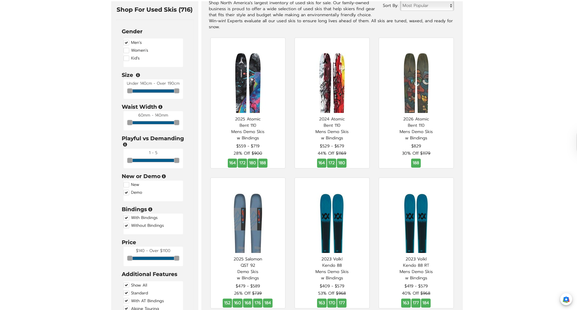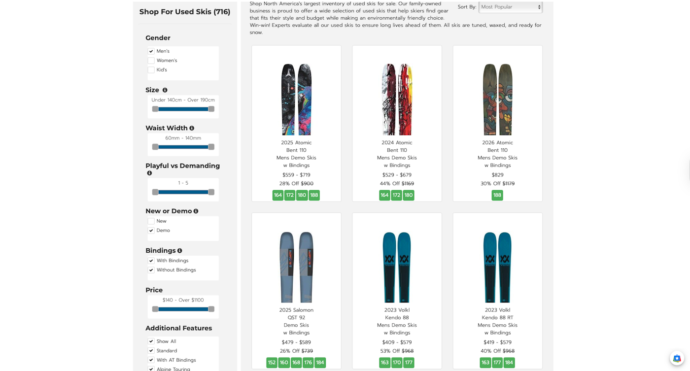 Every ski gets inspected, graded, and tuned by technicians who know exactly what to look for. Every listing includes clear condition notes for bases and topsheets, so you know what is coming your way. And if the skis show up and you are not feeling them, Powder7 offers free returns (as long as you don’t ski on the skis). Another plus, given that Powder7 sells new skis too, they can provide great ski recommendations through their online ski recommendation quiz and in person from their numerous ski experts.Â