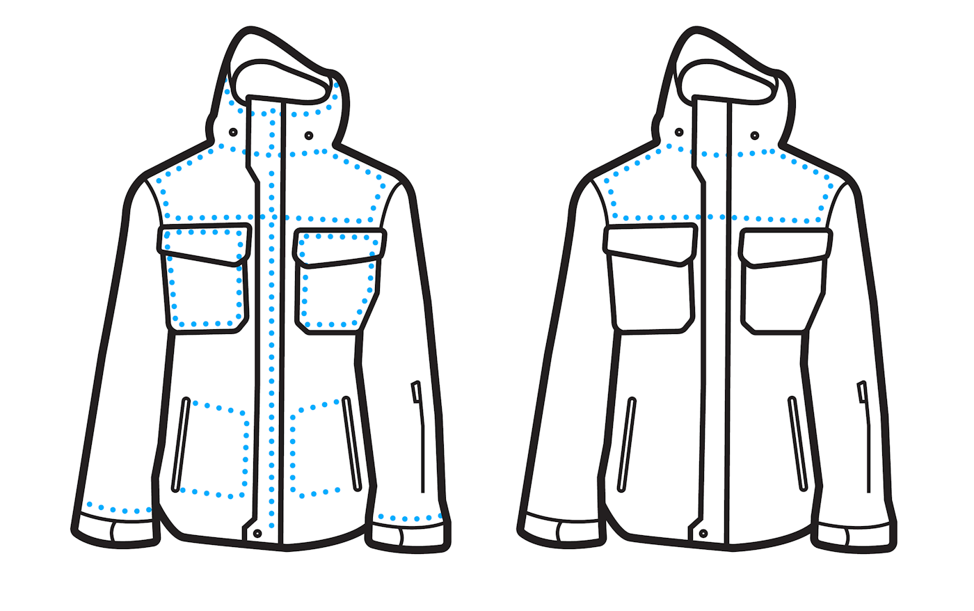 Critical or strategic seam-sealing is when only the most exposed seams of an shell—such as the shoulders, chest and hood—are taped or welded. This method is typically found on mid-level outerwear and is sufficient for casual skiers and moderate weather conditions.
