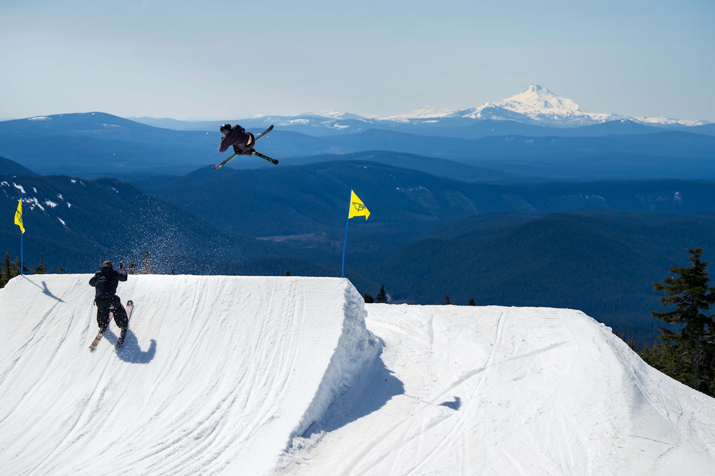 Once at the ski area, make your way to the Palmer Lift. Visible from the base with no clouds, Palmer marks the highest lift at Timberline. Spin a few laps in the public park (a must when the sun is out and the vibes are sky high) and then head to the top of the lift.