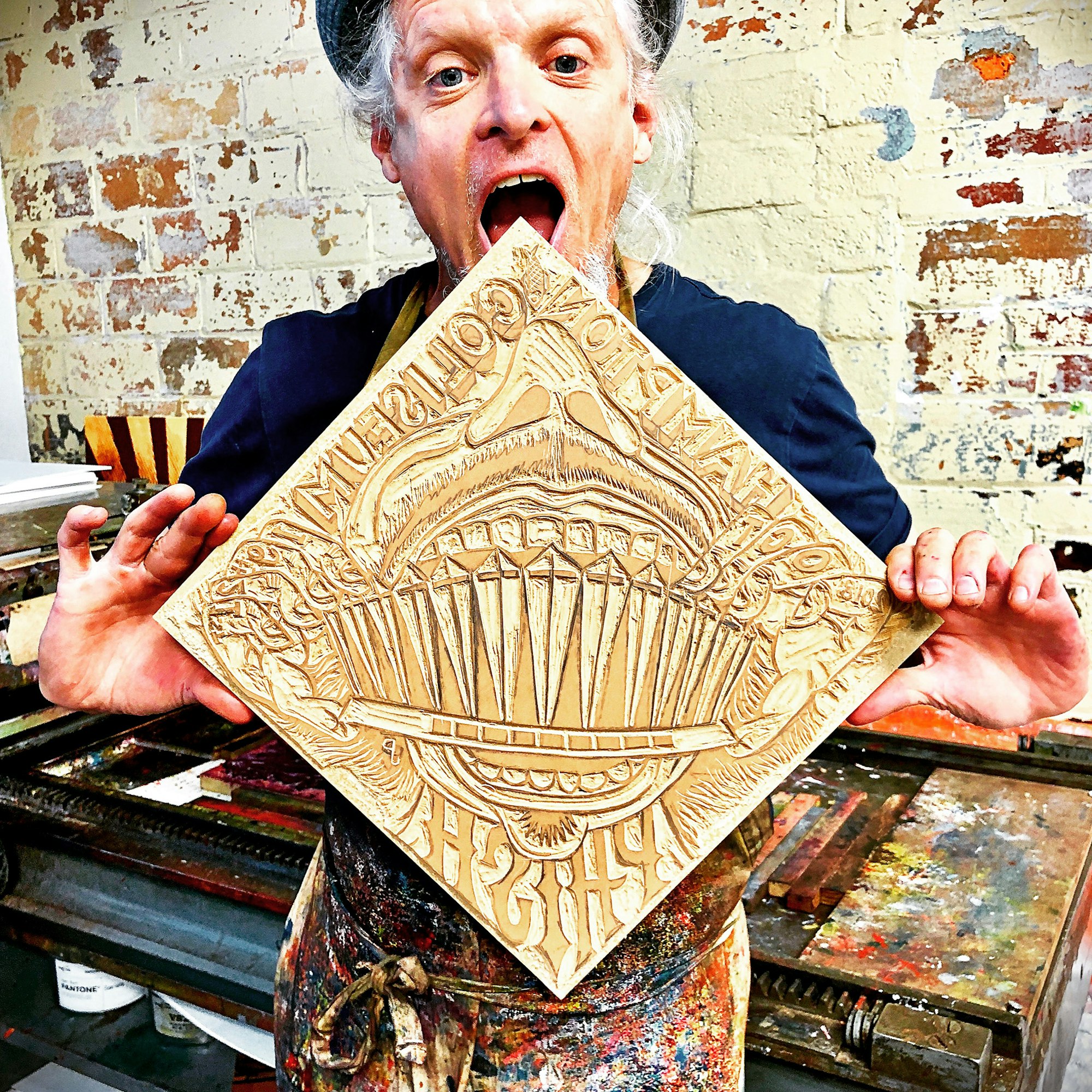 Pennsylvania-born Pollock is a longtime printmaker and artist renowned in the music world—especially amongst Phish-heads—for his colorful, cartoonish concert posters. Since the late-’80s, Pollock has been honing his craft, using hands-on techniques to create caricatures of reality—think everyday characters with a folky, funny twist. He’s created linoleum-cut prints for countless Phish performances and has been selling fine art prints via his gallery for over 30 years.