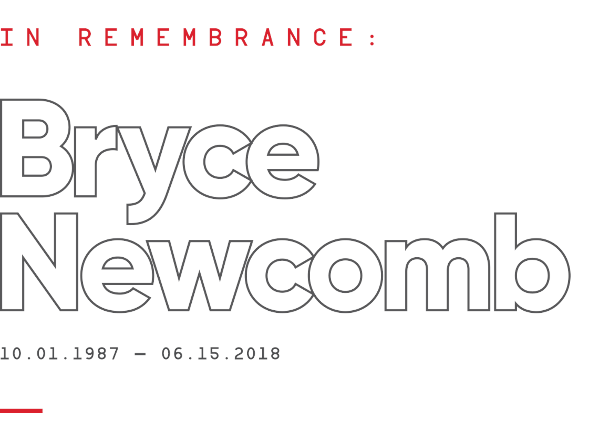 On March 27, 2018, Bryce Newcomb was the victim of a cornice failure outside of Jackson Hole Mountain Resort, suffering blunt trauma to the head after a lengthy fall. The pro skier was in a coma for the next three months and died on June 15. The enormous outpouring of support from the Jackson community, greater ski industry and all those he touched during his life was a true testament to Newcomb’s character and his impact on those around him.