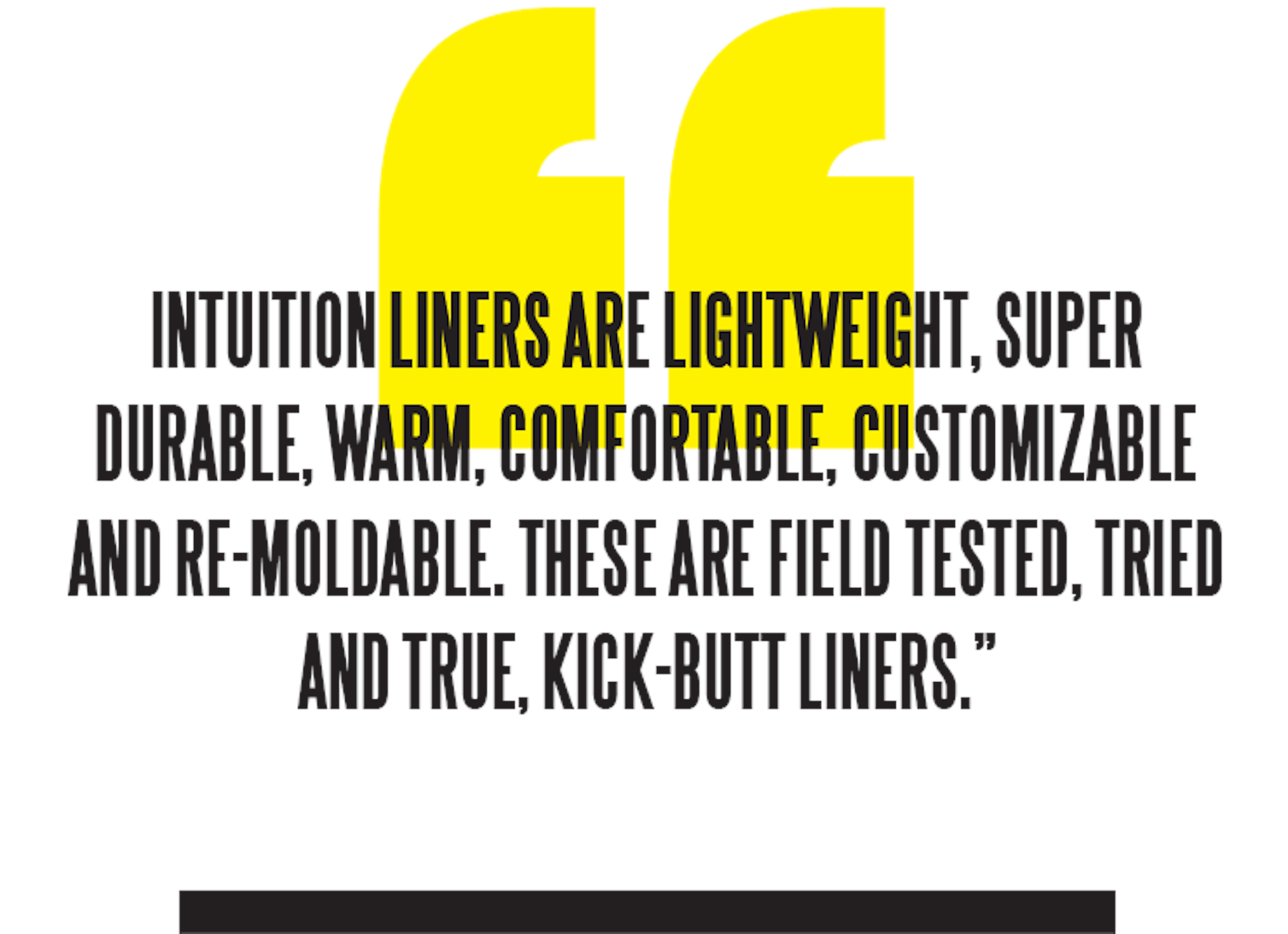 “Scarpa and Intuition are like Ferrari and Pirelli,” says Scarpa’s Miller. “When you think of one you think of the other. Why would you use anything else?” Like Kleenex replacing the term “facial tissue,” Intuition has become almost completely synonymous with the product. Miller points to unwavering performance as the reason. “Design is not about adding more,” Miller explains. “It’s about only using what is necessary. Intuition liners are lightweight, super durable, warm, comfortable, customizable and re-moldable. These are field tested, tried and true, kick-butt liners.”