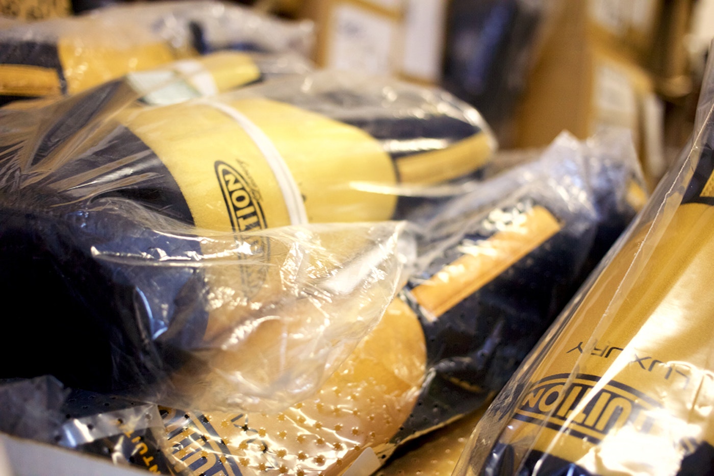 Early experimentation was, well, challenging to say the least. Foam would shrink when heated, then harden and result in a material that couldn’t be re-molded and didn’t hold a custom foot shape. Glues wouldn’t stick, which is the only job glue has. Fabrics and stitching were limited to the formability of foam that wouldn’t hold its shape. It was a frustrating process. Watt says that, “trying to replace a 27-piece liner with a single piece of foam was insanely difficult,” akin to picking a combination lock. After a great deal of trial and error, things started working. Watt then began carving wooden feet on which to build the prototypes so that Intuition liners had an “off-the-shelf” commercial fit. This proved to be a breakthrough; the liners finally held their form.