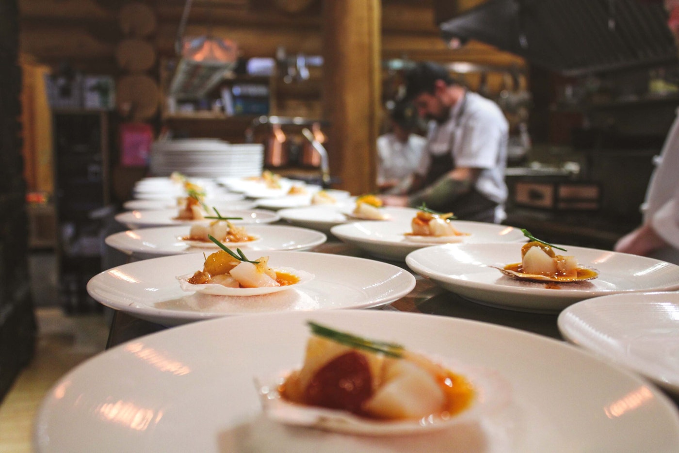Four beautifully appointed timber lodges are nestled off the grid, between the frozen lake and old-growth forest. Cedar and Tamarack Lodges each have eight rooms and Red Eagle Lodge has 10; all have ensuite bathrooms. Each lodge has its own outdoor sauna with views of the Lizard Range and the main spa offers a barrel sauna, massage therapy and a heated pool. Bear Lodge offers lounge seating, a pool table, foosball, darts, classic ski movies, a guitar collection and an iconic massive stone fireplace. A gear locker room and full gym are also availabe on the lower level. Enjoy a three-course, locally-sourced menu each night, with dishes like Fraser Valley duck dumplings and beef en croute, paired with wines from the 3,000-bottle cellar.