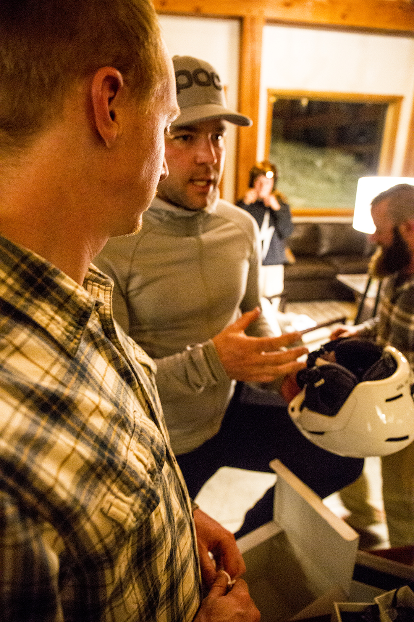 POC’s Ben Coates explaining the SPIN technology found in the Obex SPIN helmet to tester Phil Krening.