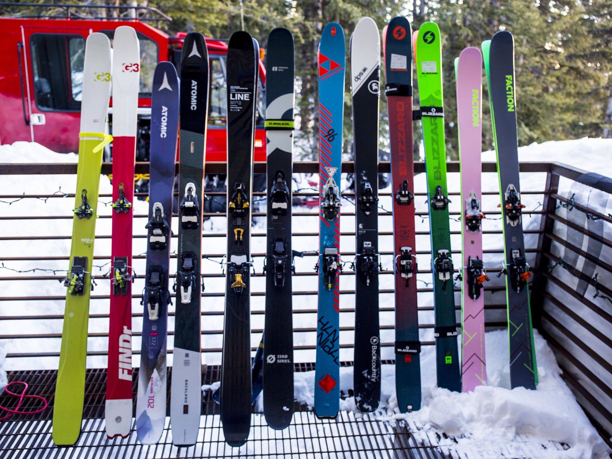 From left to right: The G3 SEEKr 100 and FINDr 94; Atomic Backland 102 W and Backland 107; Line Vision 108; Armada JJ 116 Ultralight; Fischer Hannibal 96; DPS Wailer 106; Blizzard Zero G 105 and Zero G 95; Faction Agent 2.0x and Agent 2.0