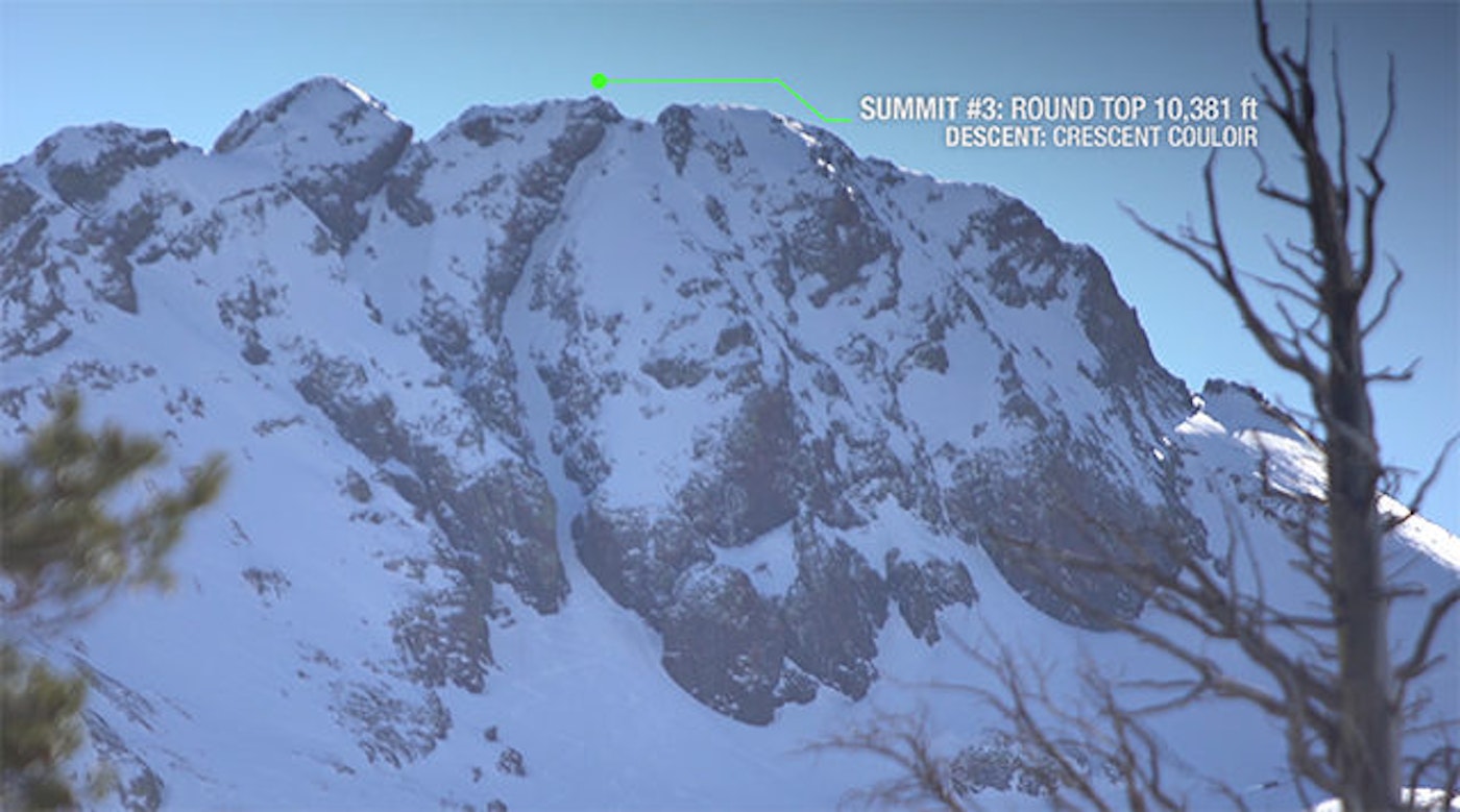 With the toughest descent out of the way, it was time to make moves toward the final two objectives. Red Lake Peak brought some much needed mellow terrain. The face does feature plenty of cliffs and steep chutes, but with daylight running out, the Tahoe Ten team chose the quickest descent down the mountain.
