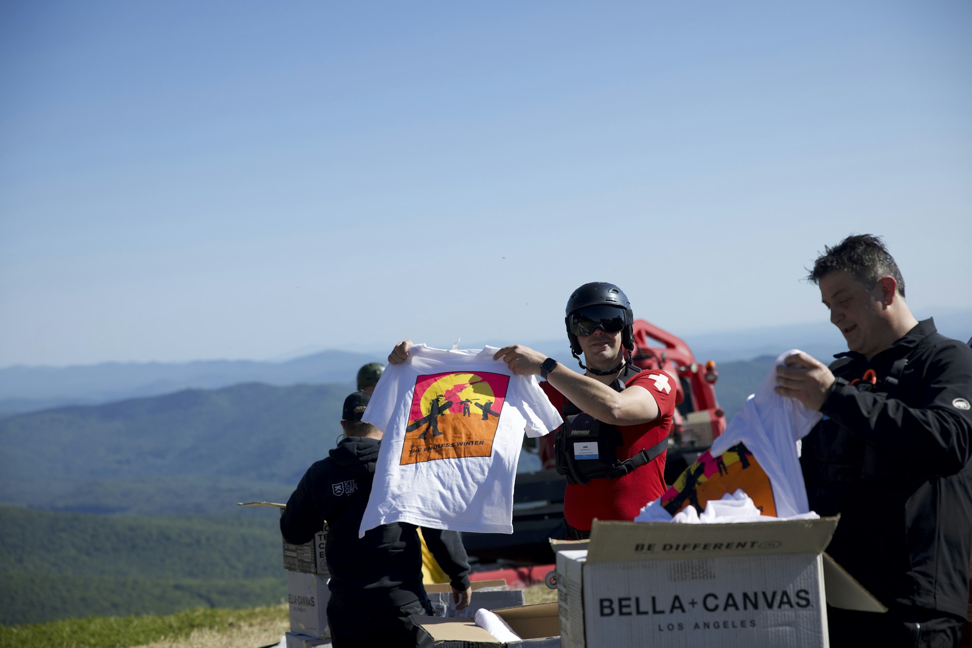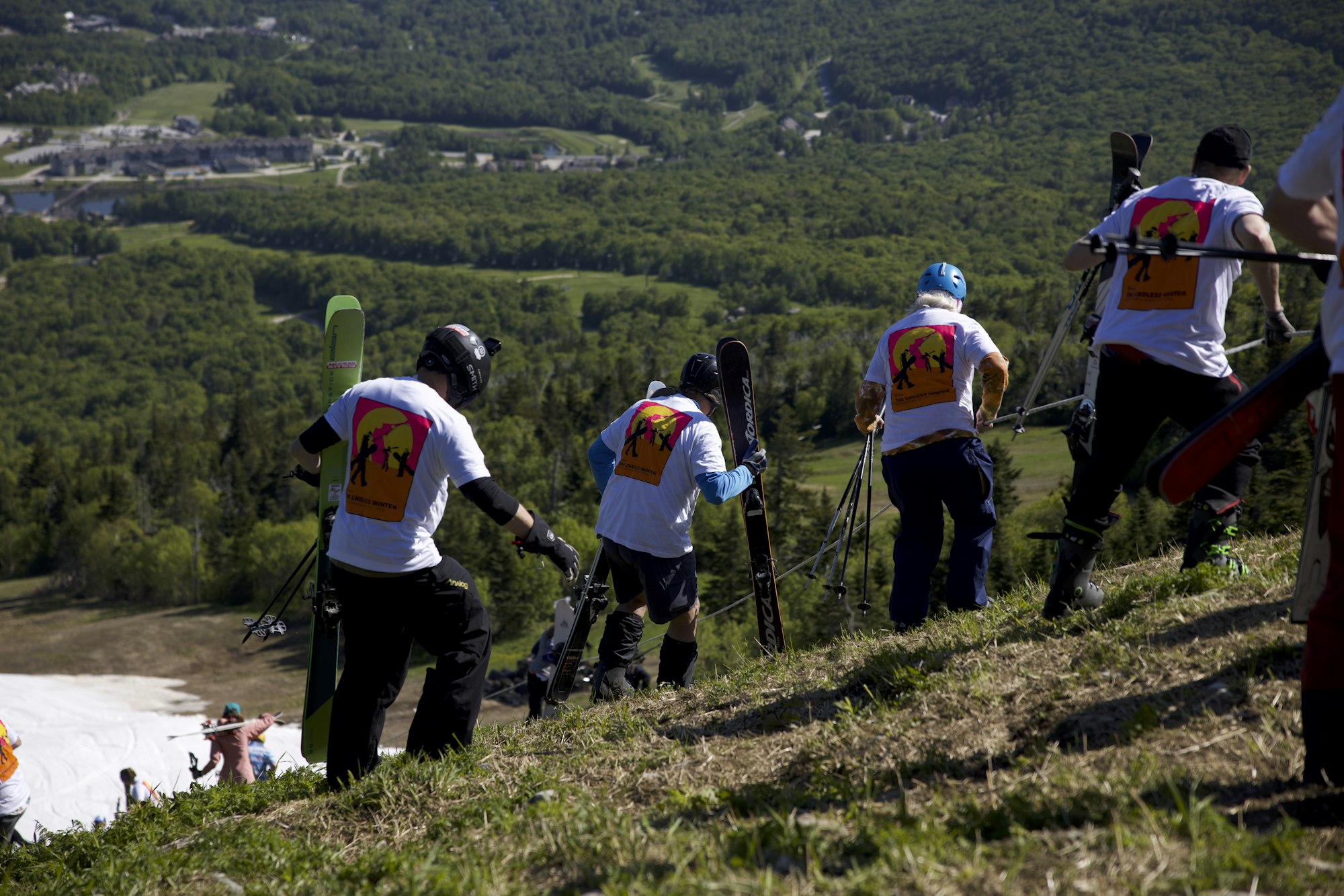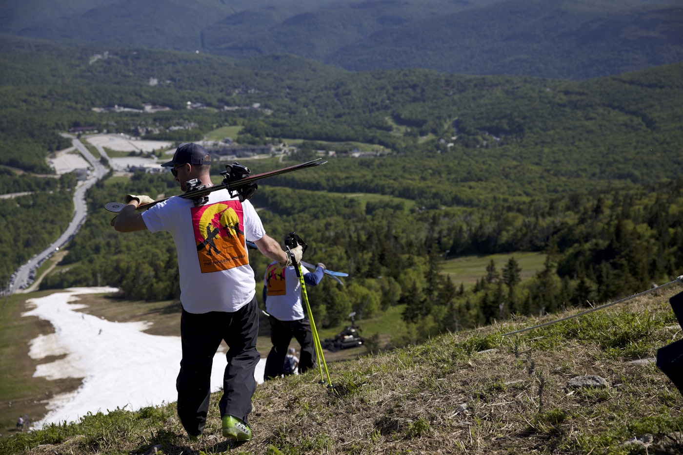 Locals at The Beast had to work a little harder to get their turns in, as can be the case on the East Coast. After departing the Superstar Express Lift, the intrepid skiers had to make their way over grass and rock alike, down a treacherous face (complete with a rope dangling from snow cats perched above to help aid on the descent). Treacherous might be a bit of an exaggeration, but it’s exactly this kind of dedication we love to see in the wide world of skiing. It was only fitting that the resort had merch made to commemorate the illustrious tradition. Patrol handed out t-shirts that read, “Killington – The Endless Winter – Superstar Glacier, June 1 2024.”