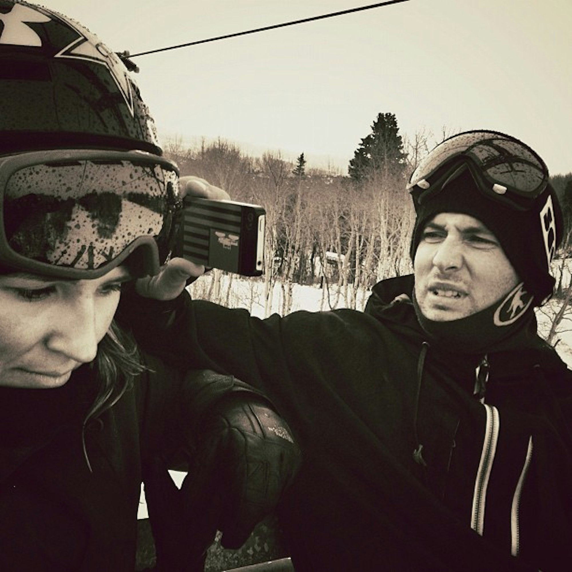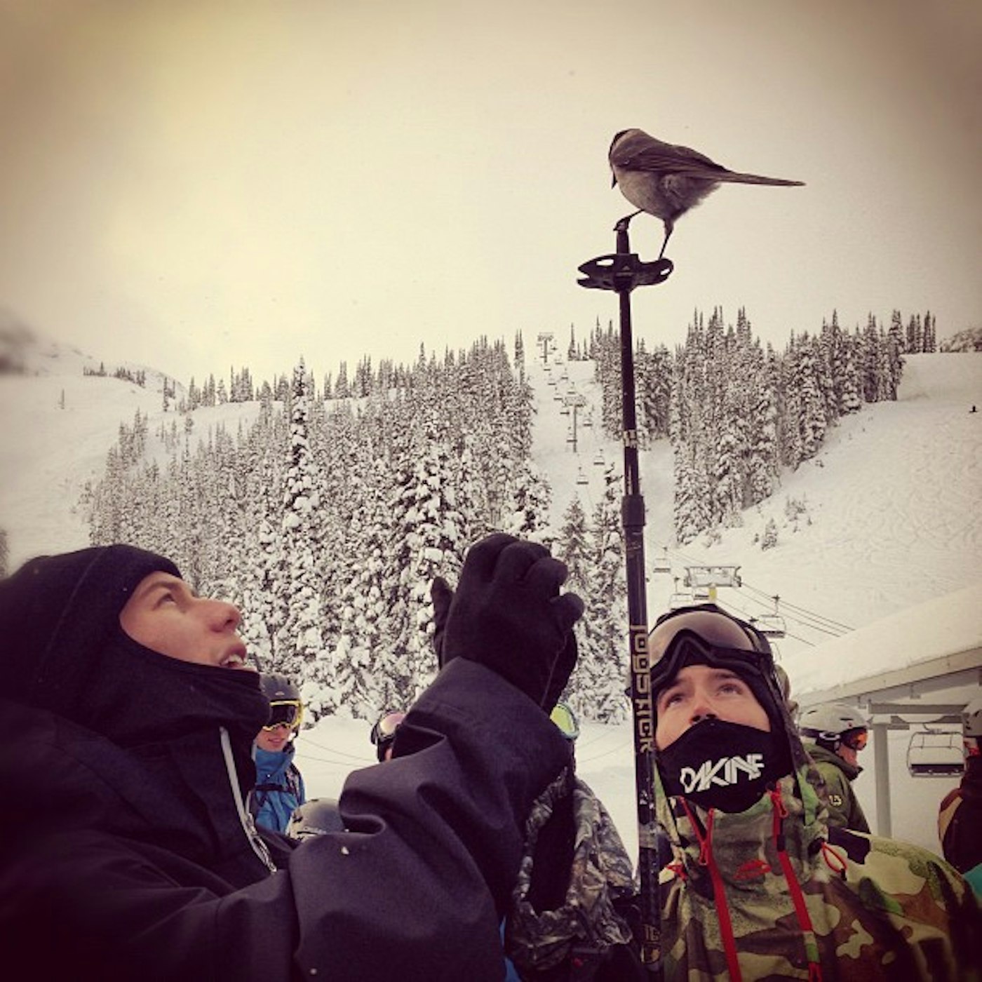 @tatummonod: “Killin’ time in the lift line @mikeheni the pet detective & @joe_schuster the bird puncher.” Posted December 3, 2012.