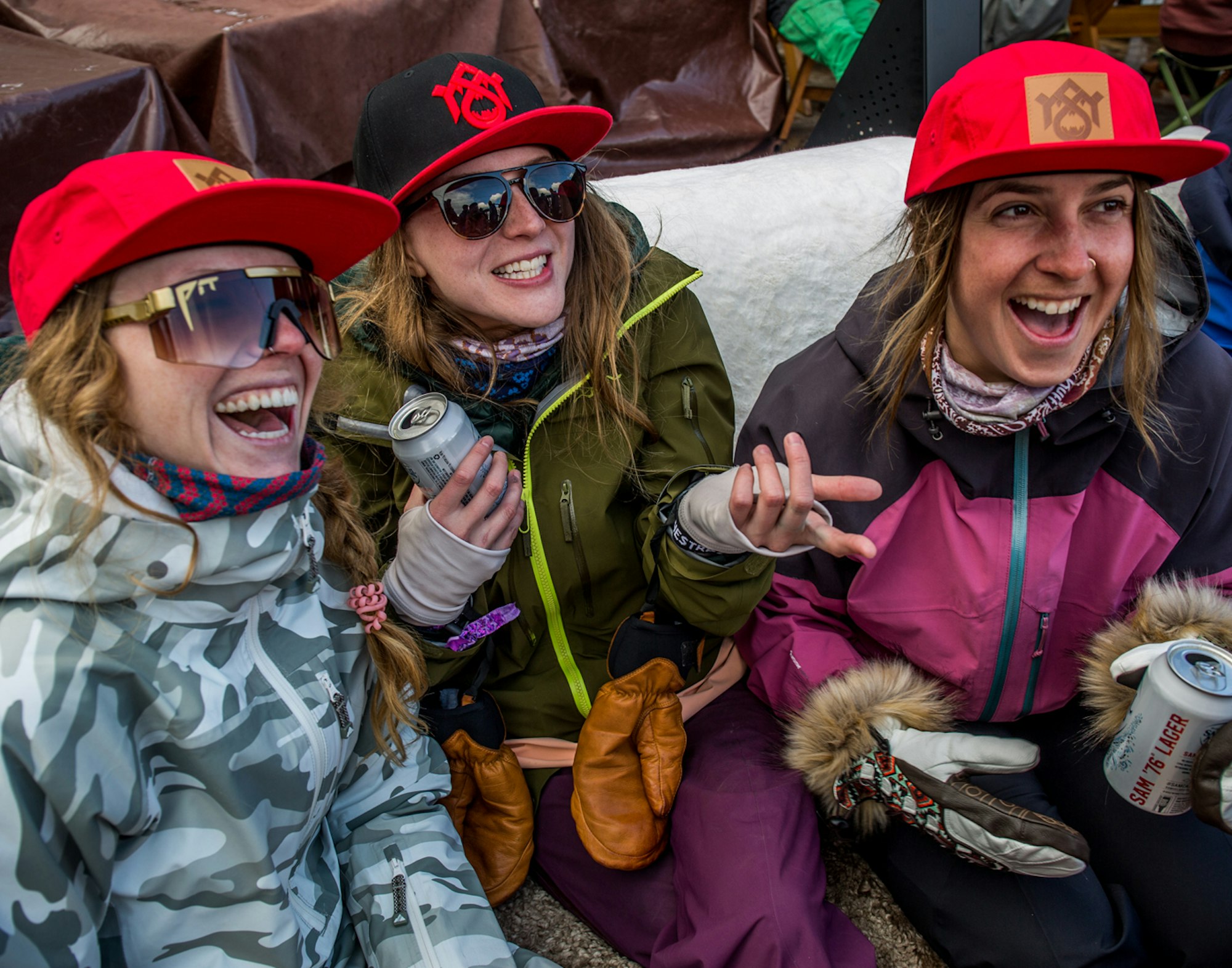 Testers enjoying the falling snow. Photo: Donny O’Neill