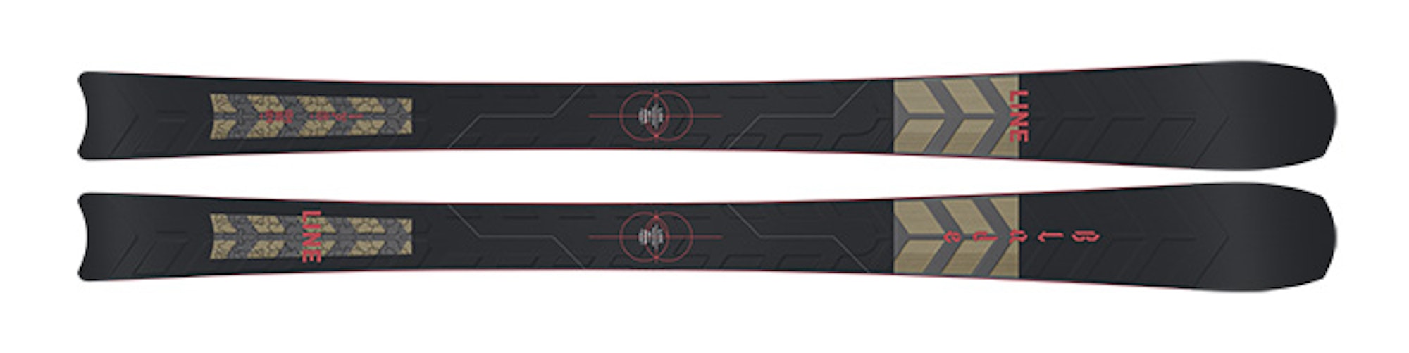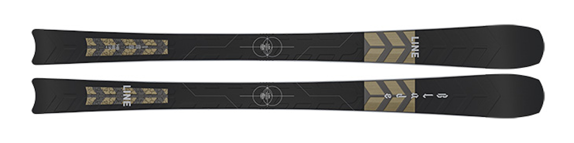 Inside the ski, you’ll find a few innovative techniques that make the Blade unique. The tip and tail shape, while definitely eyebrow-raising, are inspired by directional skateboards of the 1980s that promoted carving, power slides and slashing in skate bowls. As far the guts, the Blade is powered by Gas Pedal Metal, two independent Titanal pieces (one near the tip, with a break underfoot and another near the tail) with strips that extend across the ski, resulting in unmatched torsional rigidity and edge grip without loss of energy. By splitting the Titanal in two, Line aimed to promote a rounder and more dynamic turn shape, as well as make it easier to change the size and shape of the turn, by slightly softening the longitudinal flex.