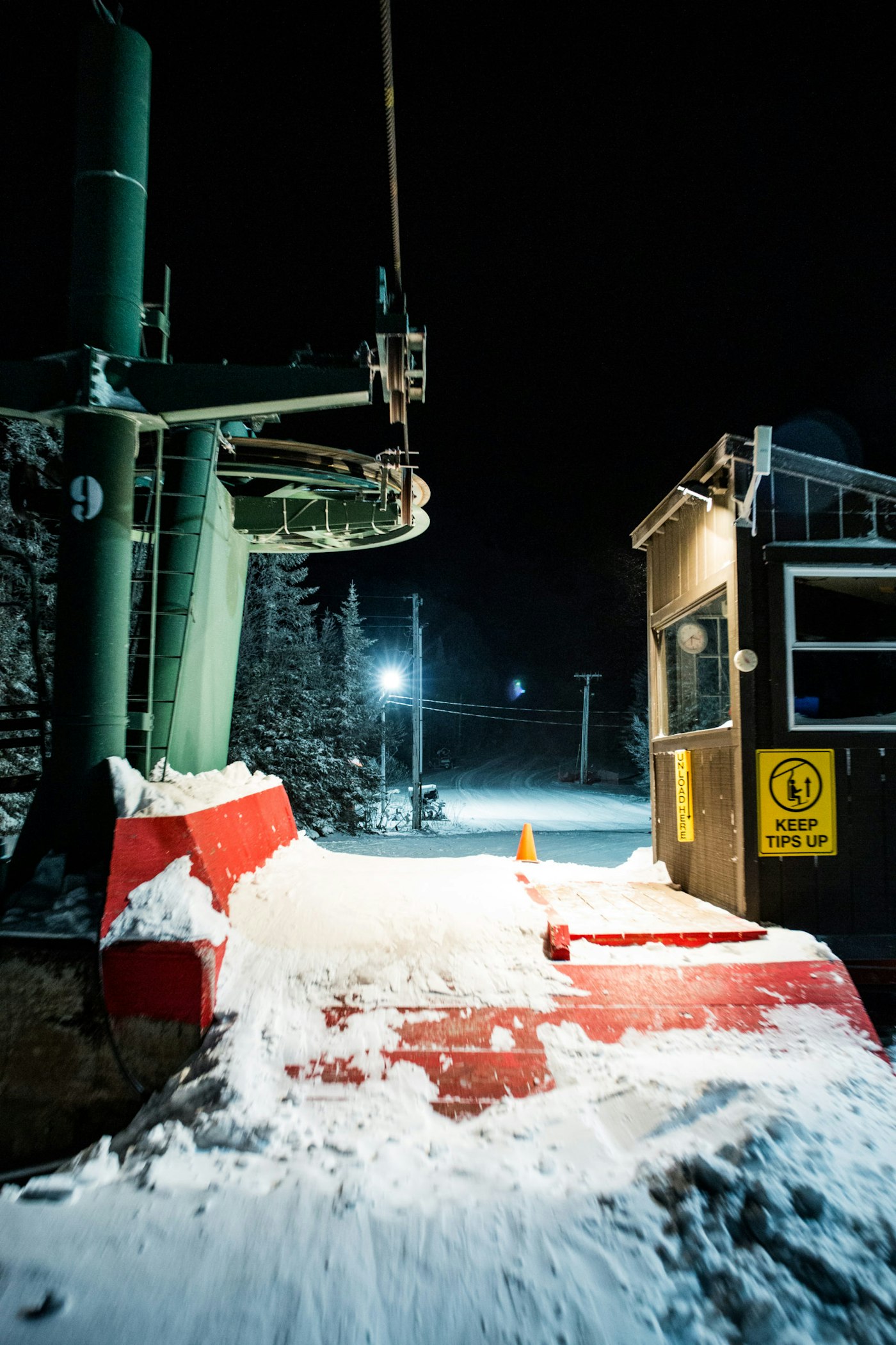Unloading the chairlift at Bolton Valley, Vermont.