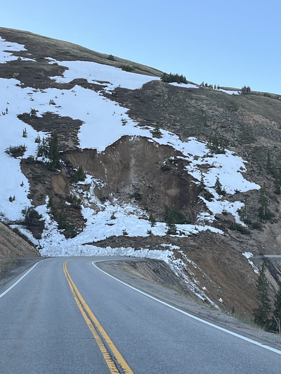 While avalanches are common on Loveland Pass, frequently endangering drivers and skiers, a major landslide buried the Pass’s famous U.S. Highway 6 this past weekend. Up to 20 feet of mud and rock came down early Sunday morning, June 15, closing the mountain route indefinitely as Colorado’s peak summer recreation season begins, and, unfortunately for skiers, on Arapahoe Basin Ski Area’s 2025 winter closing day.
