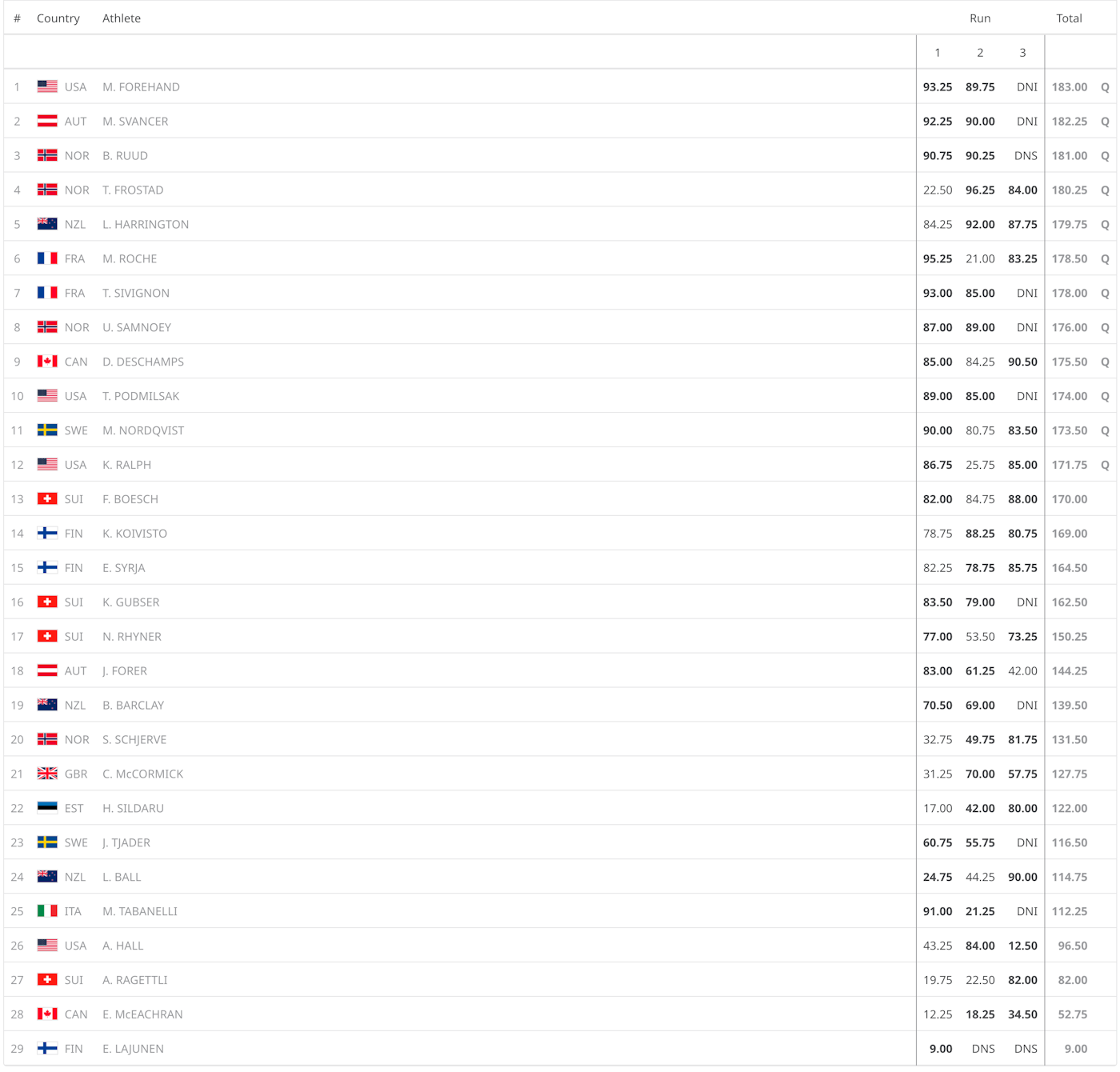 2026 Men's Olympic Big Air Qualifying Results