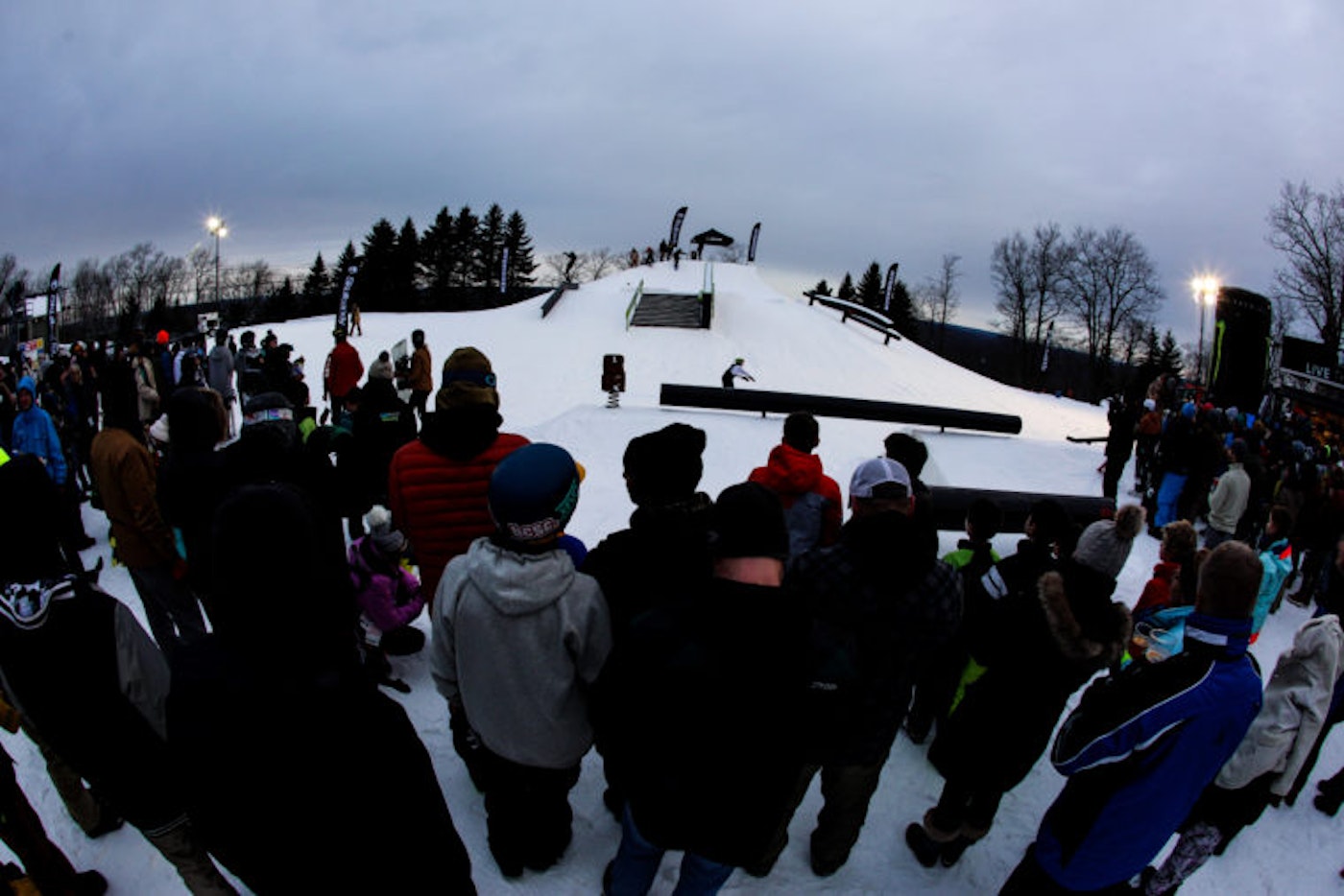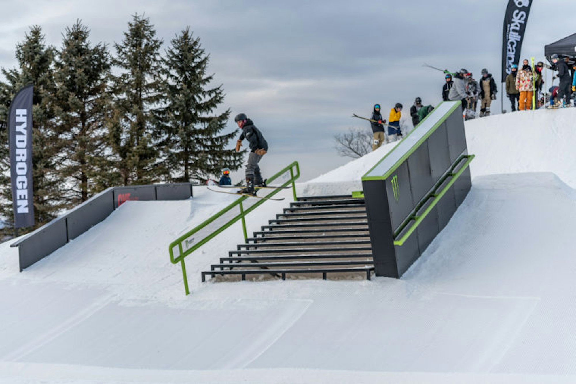 This weekend, the FREESKIER team headed East to the Pocono Mountains in Pennsylvania to witness the Monster Energy After Hours Rail Jam at Jack Frost Big Boulder (JFBB). The resort, known for its park builds, was buzzing with locals after a long Saturday of skiing, and the custom rail garden built for the event had a crowd gathered before the competition even started.