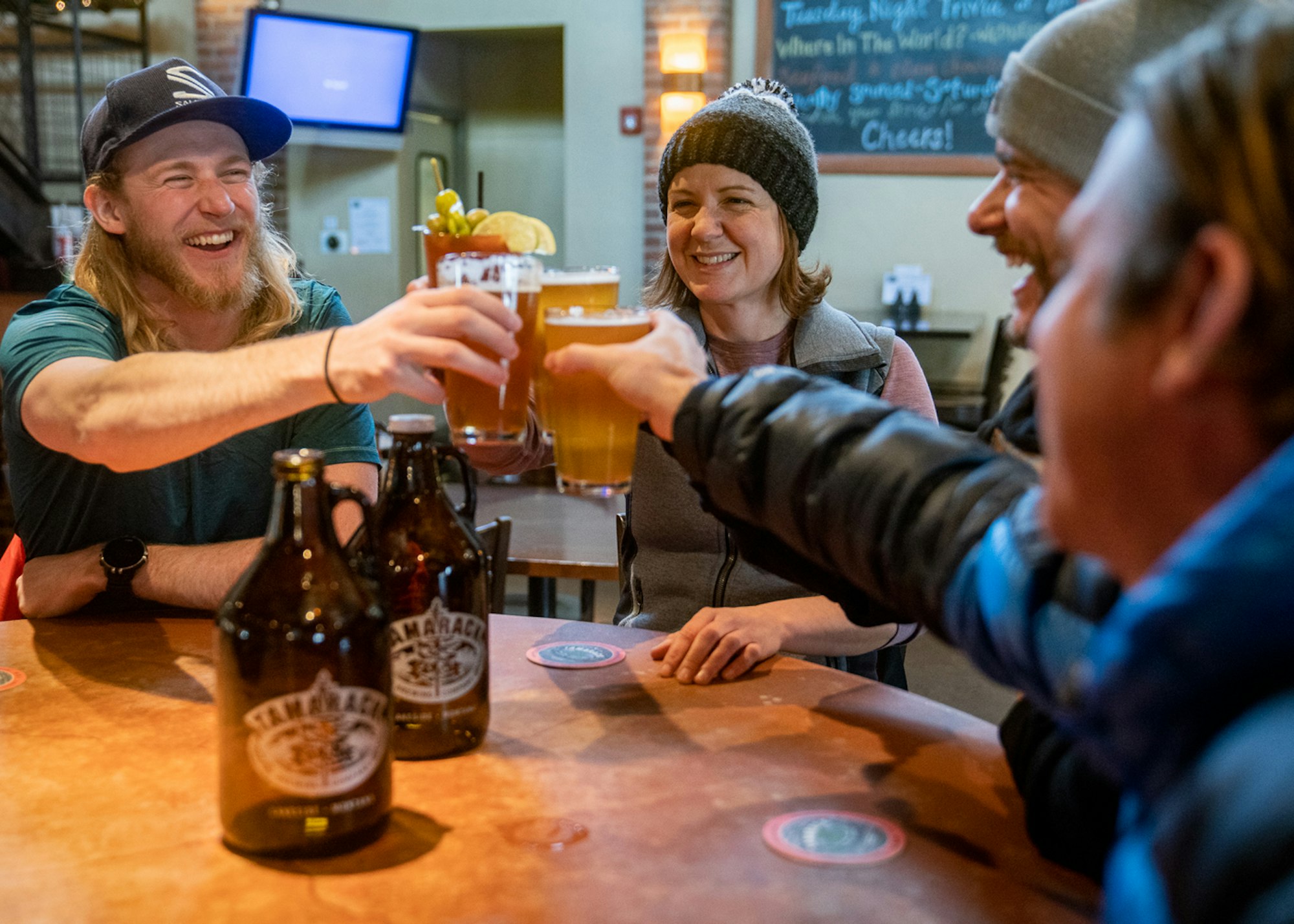 Enjoying a well-deserved après-ski at the Tamarack Brewing Company.