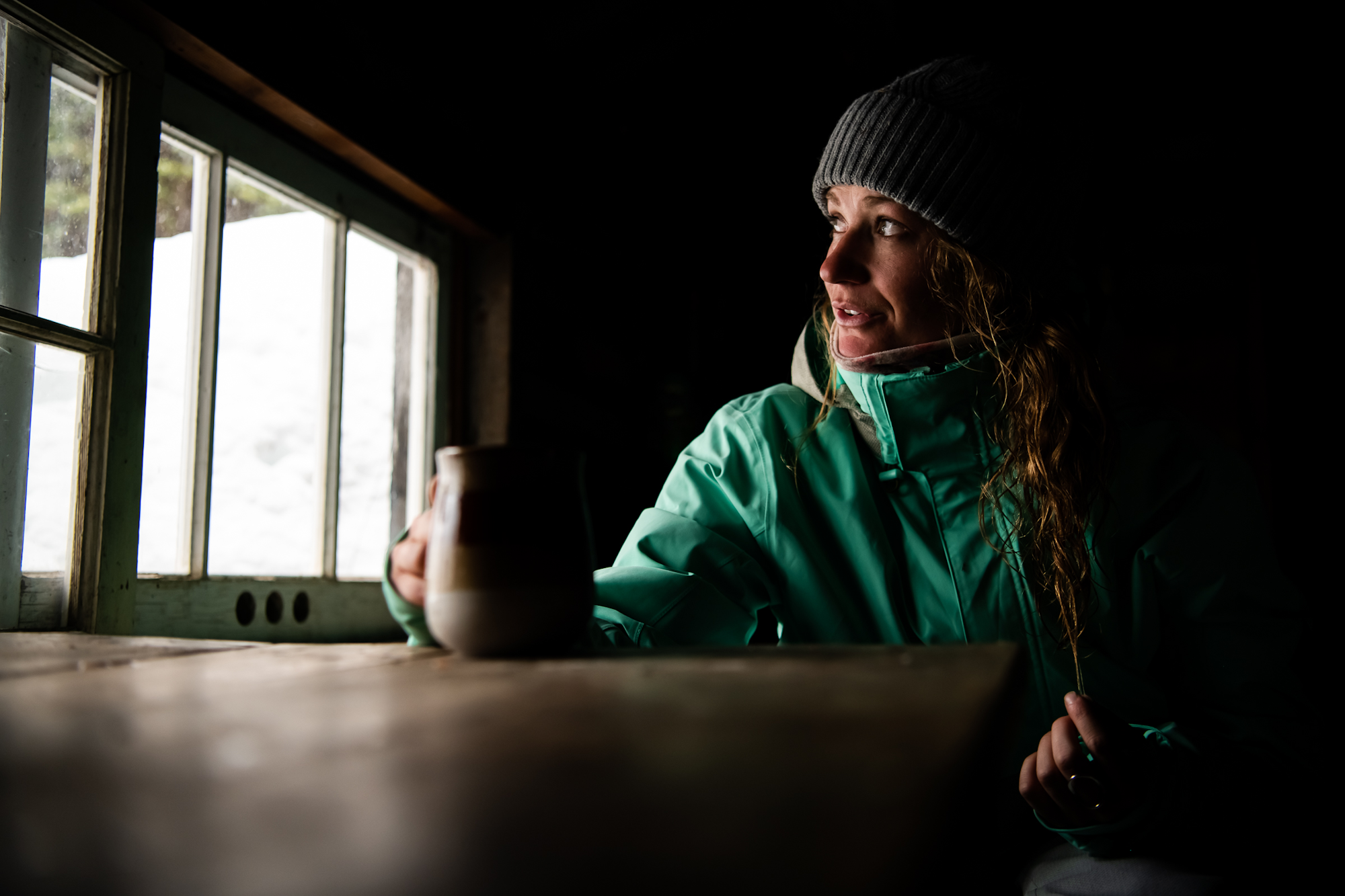 Enjoying a cup of coffee in the Spyder All Out Anorak. PHOTO: Bruno Long
