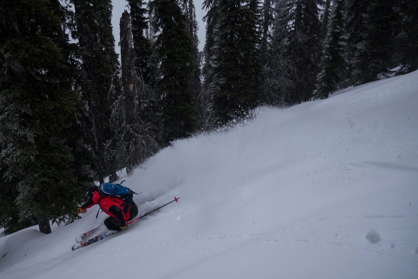 Mother Nature came through for the third day of the FREESKIER Apparel Test at Retallack Lodge. Waking up to a few new inches of fresh spring snow and a storm that had parked itself over the Selkirks, the crew chowed down on breakfast and headed for the hills to continue testing out new threads from 14 of the industry’s best brands with the help of Retallack’s two Bombardier snow cats. Between yesterday’s bluebird spring conditions and today’s more winter-like weather, our testers have been able to put 2019-2020 outerwear, midlayers and baselayers to the ultimate test.