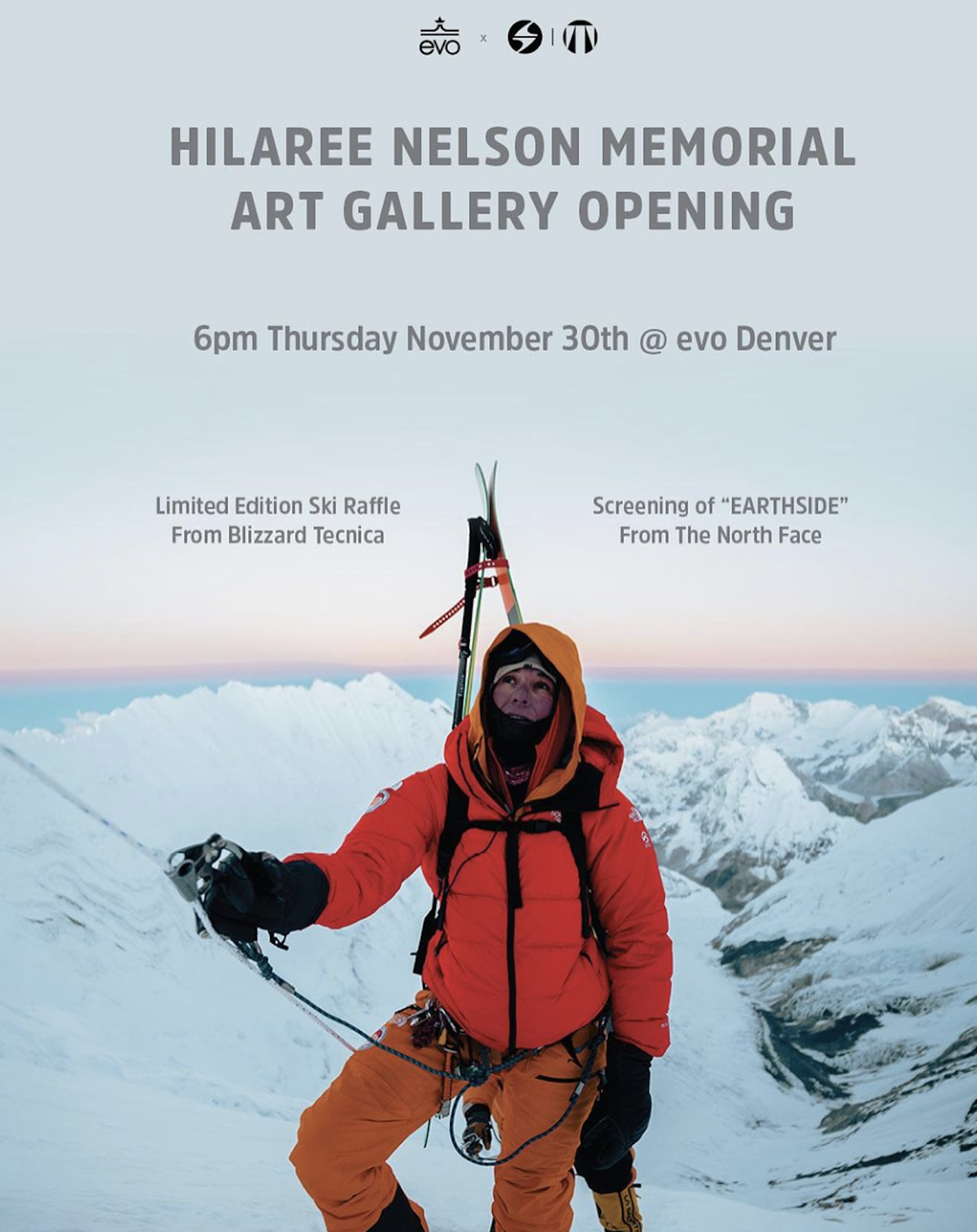 On Thursday, November 30, evo Denver, along with Blizzard Tecnica, hosted an evening celebrating the late and eternally great Hilaree Nelson. The Memorial Art Gallery included a ski raffle of limited-edition Hilaree Nelson skis and a screening of the new film from The North Face, “Earthside.”