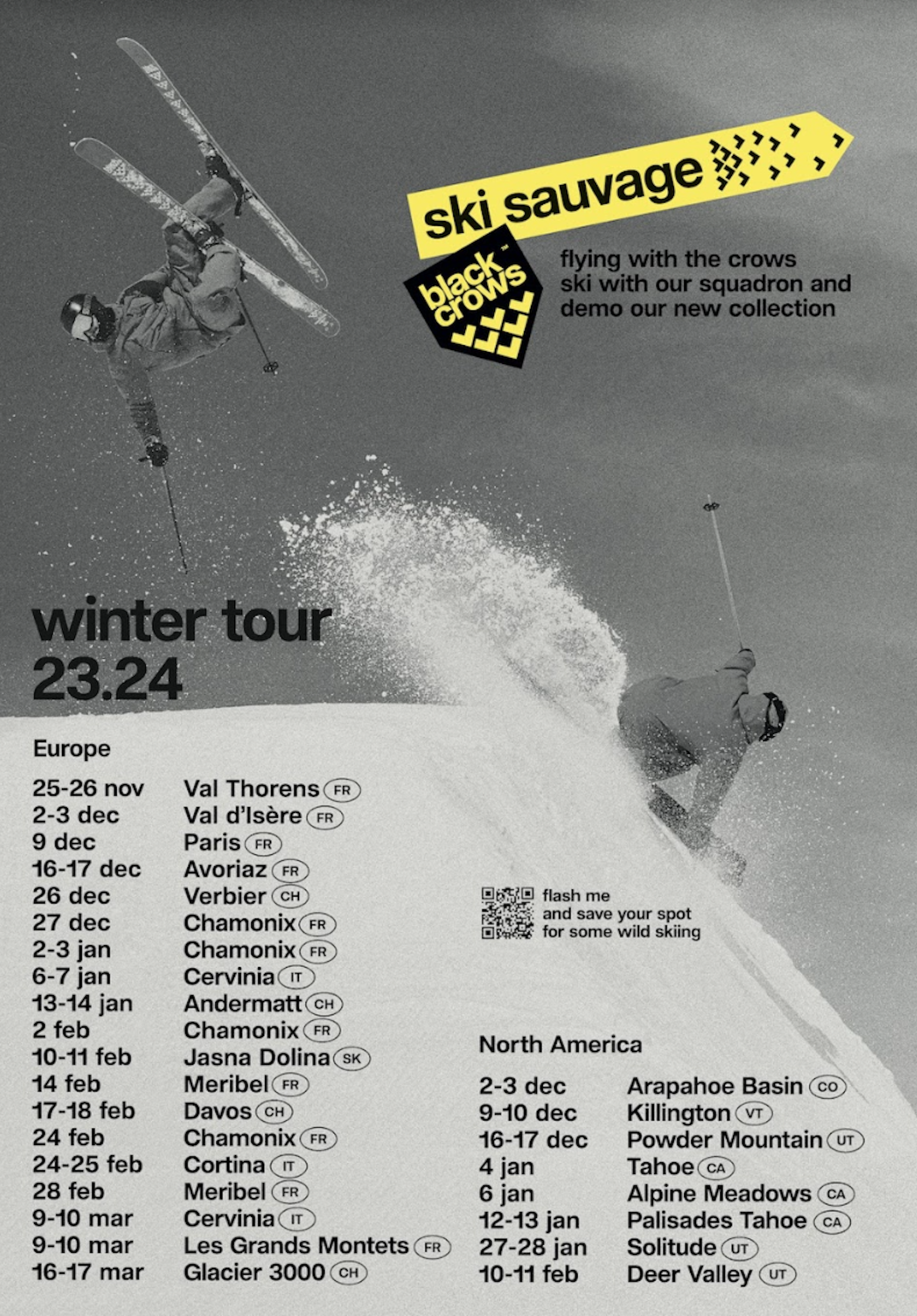 The Ski Sauvage tour from blackcrows is back for the 2023-24 season and it kicks off in North America this weekend at Arapahoe Basin. The Ski Sauvage tour will focus on weekend immersions with skiing, music, movie screenings and keynote speakers, and product-specific events with ski testing with blackcrows’ ambassadors.