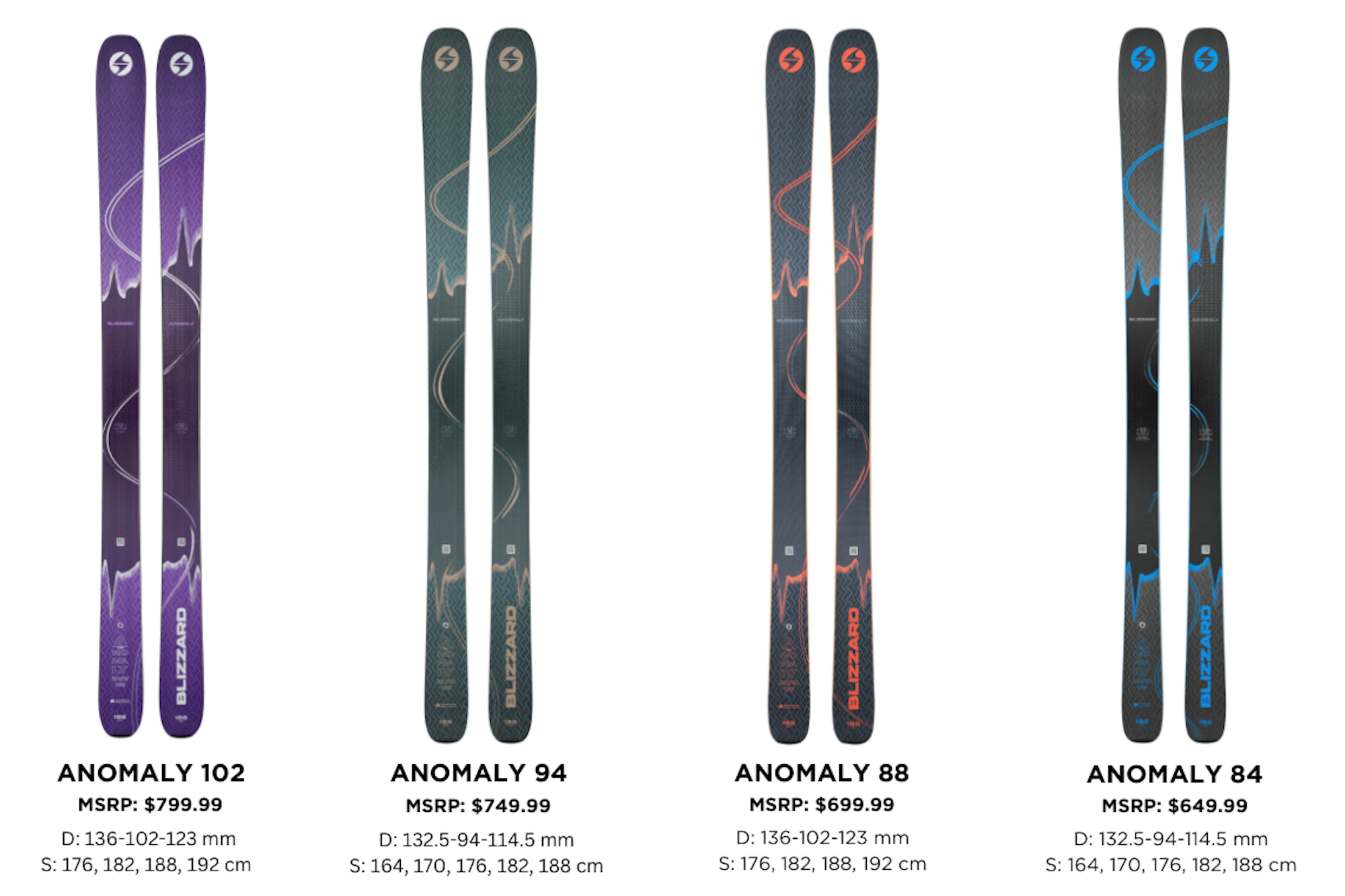 Crafted for skiers looking to approach the mountain with their own unique brand of style, speed, control and face-melting fun, Blizzard is proud to release the Anomaly collection. Available in four widths and a plethora of lengths for each width, there’s an Anomaly for every front-side shredder.